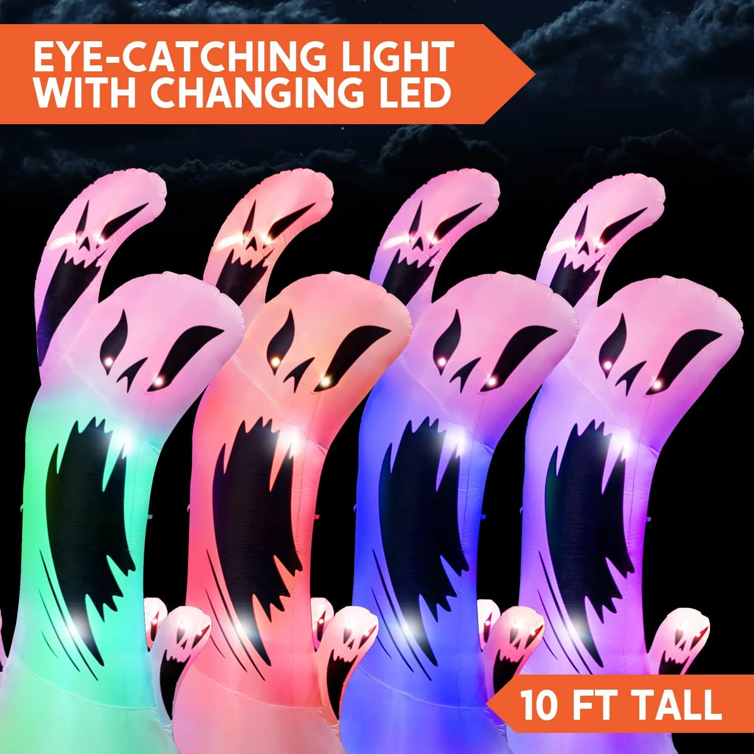 - Our scary inflatable halloween decorations features built-in multicolored flashing LED lights. This halloween ghost inflatable will help scare your neighbors and friends and pop the party with its creepy light and looking.