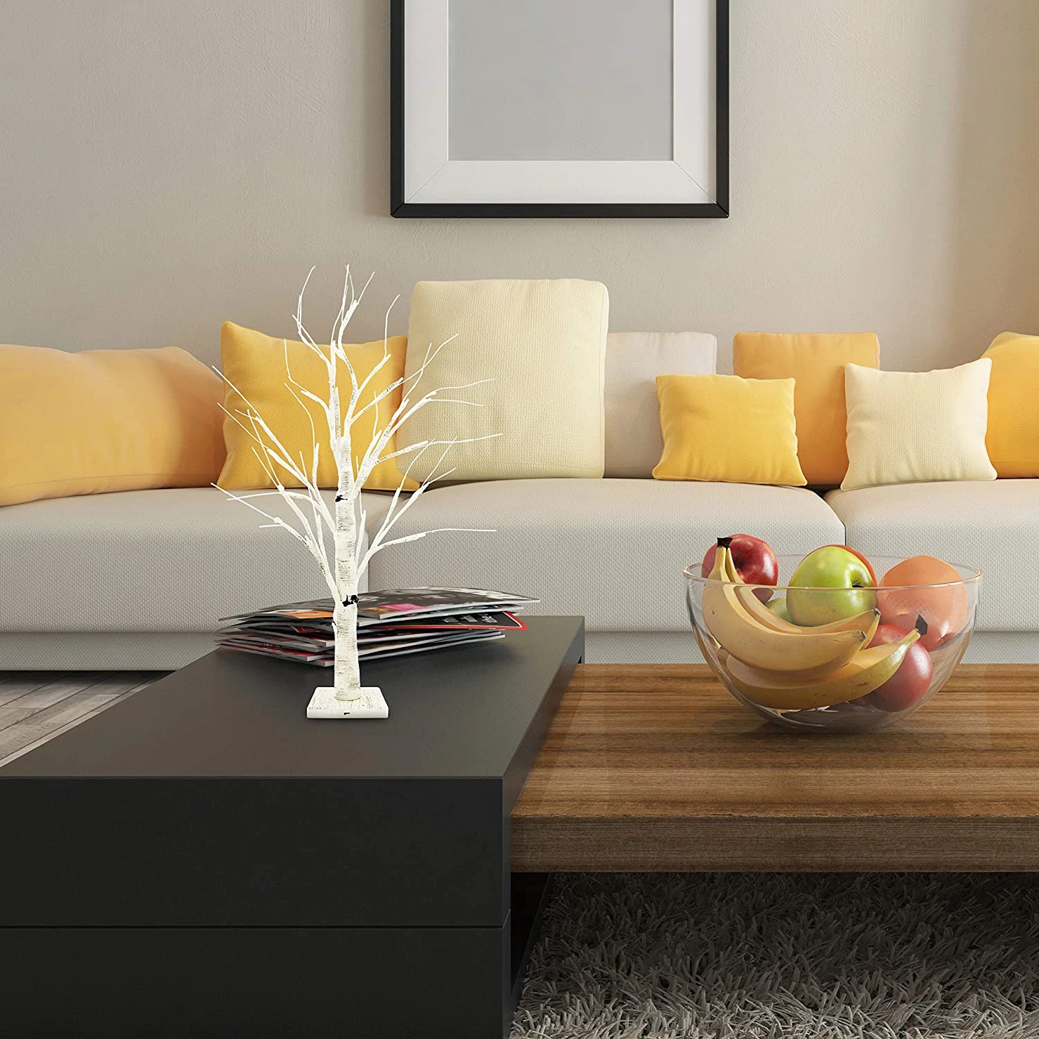 - UNIQUE DESIGN – This LED pre-lit bonsai birch tree has an overall height of 17 inches with a 4.3in * 4.3in base with 24 warm white LED lights