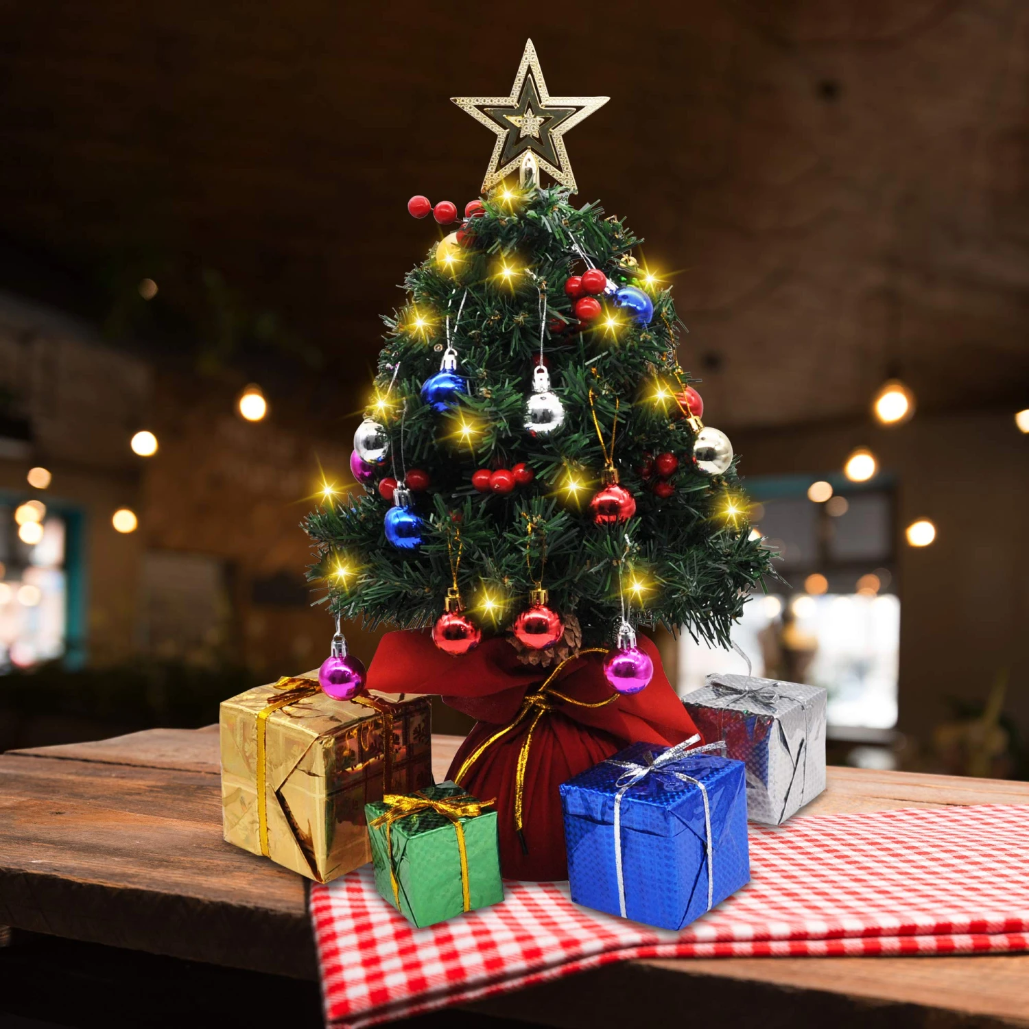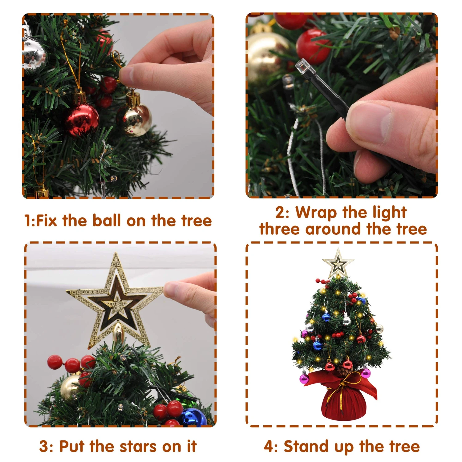 - UNIQUE DESIGN: Our small mini tabletop Christmas tree design with pre-installed lights with decorating kits, you will have all you need for your Christmas decoration