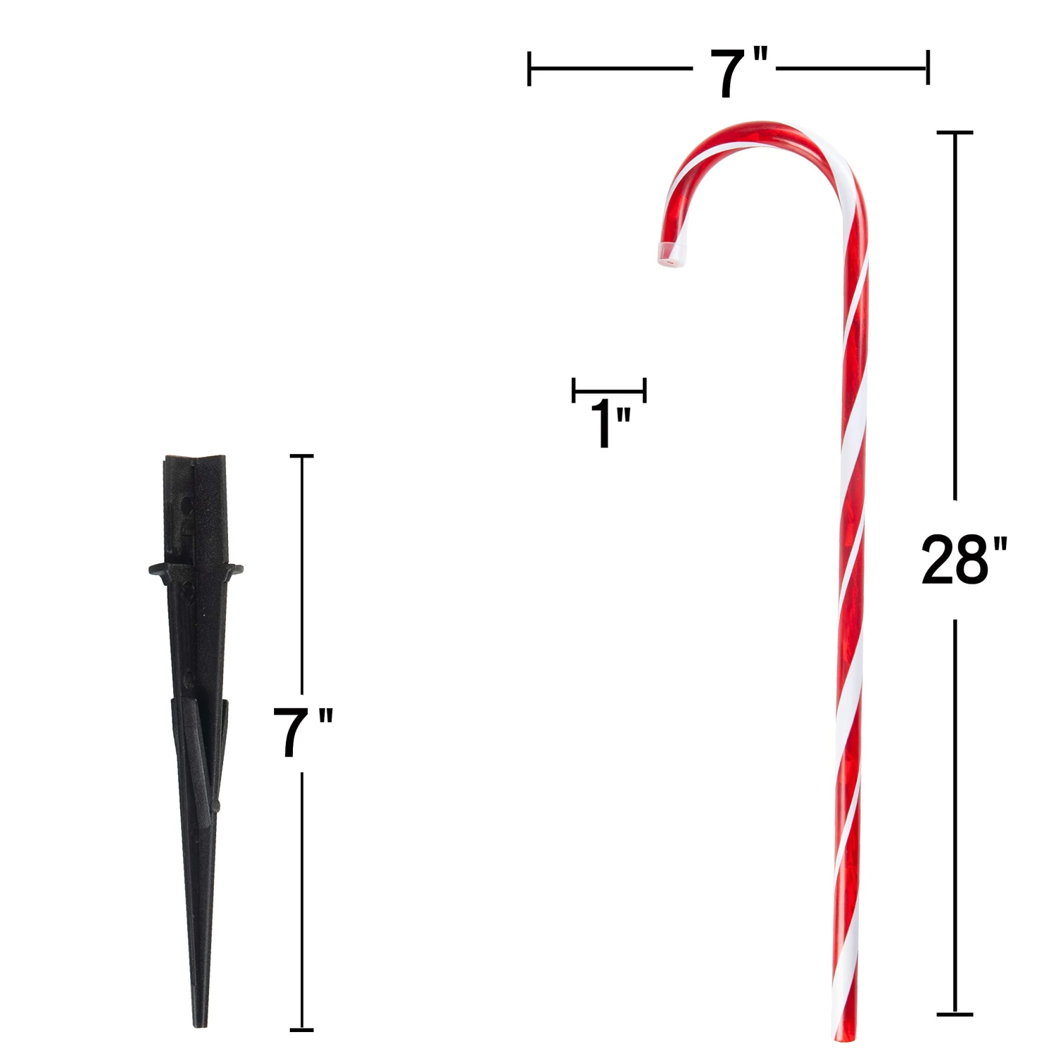 - Each candy cane measures approximately 28 inches (height) and stake measures 5 inches (height)