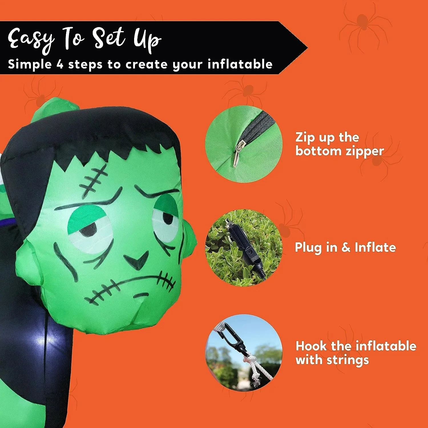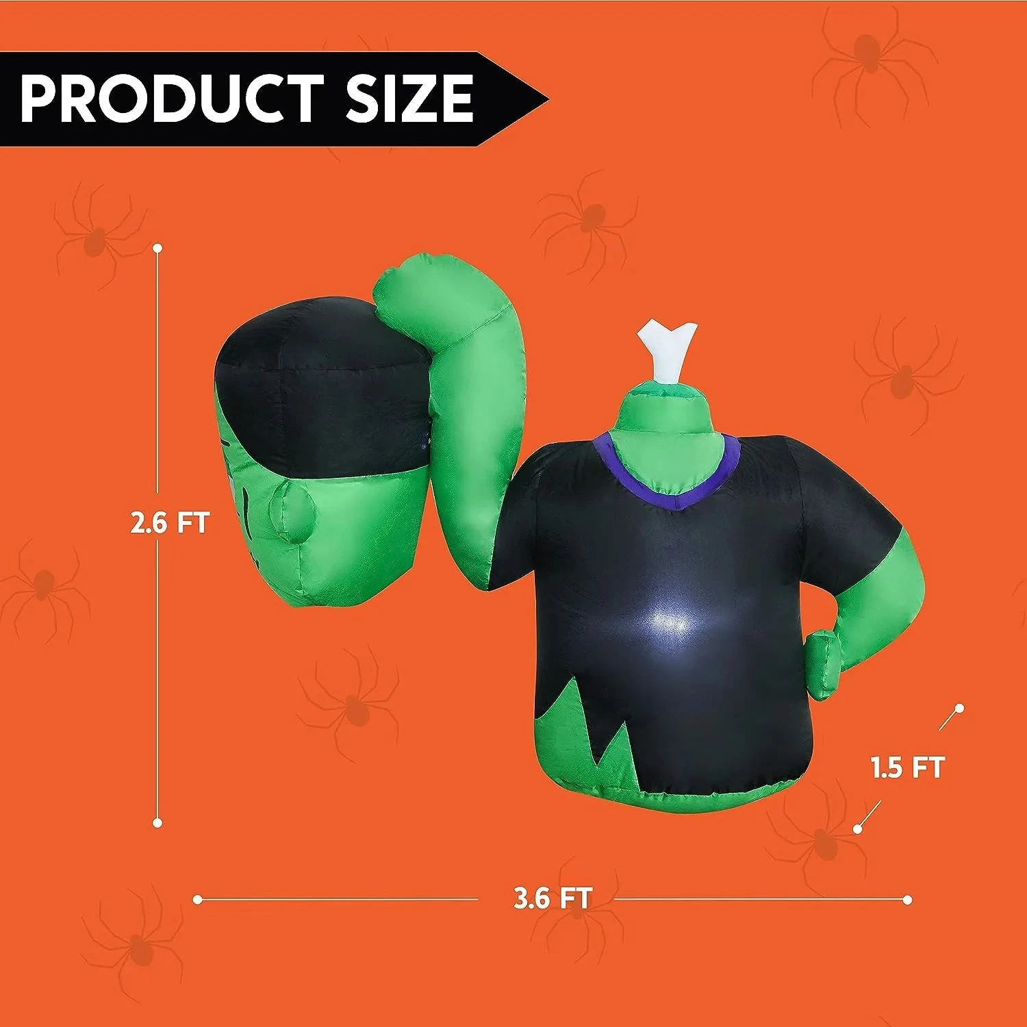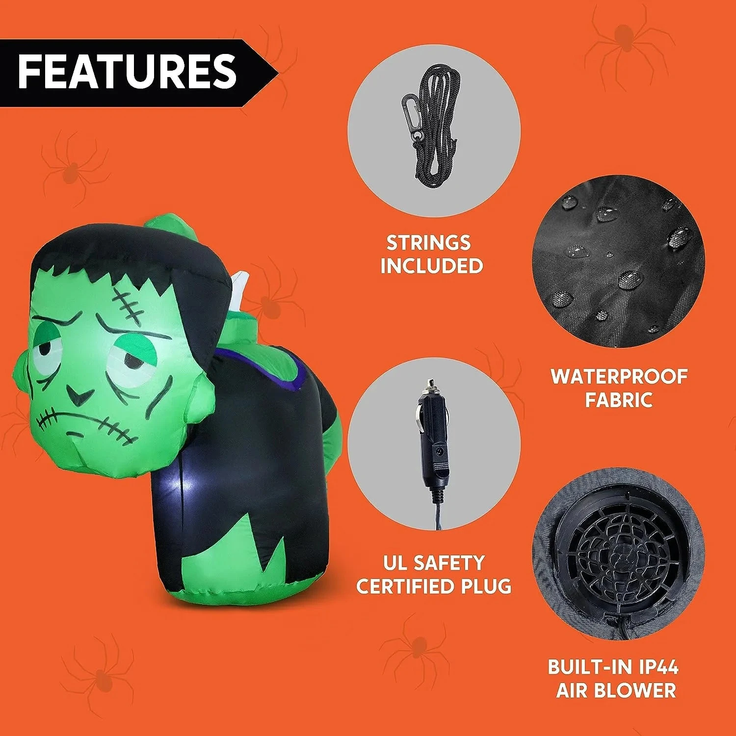 - Excellent Design. This 3.6 ft Halloween inflatable green zombie decoration features a creative and eye-catching design and adds a spooky and fun element to your Halloween car decorations. This inflatable comes with an extended cord, fastened ropes, built-in sandbags, and a car plug with UL certification.