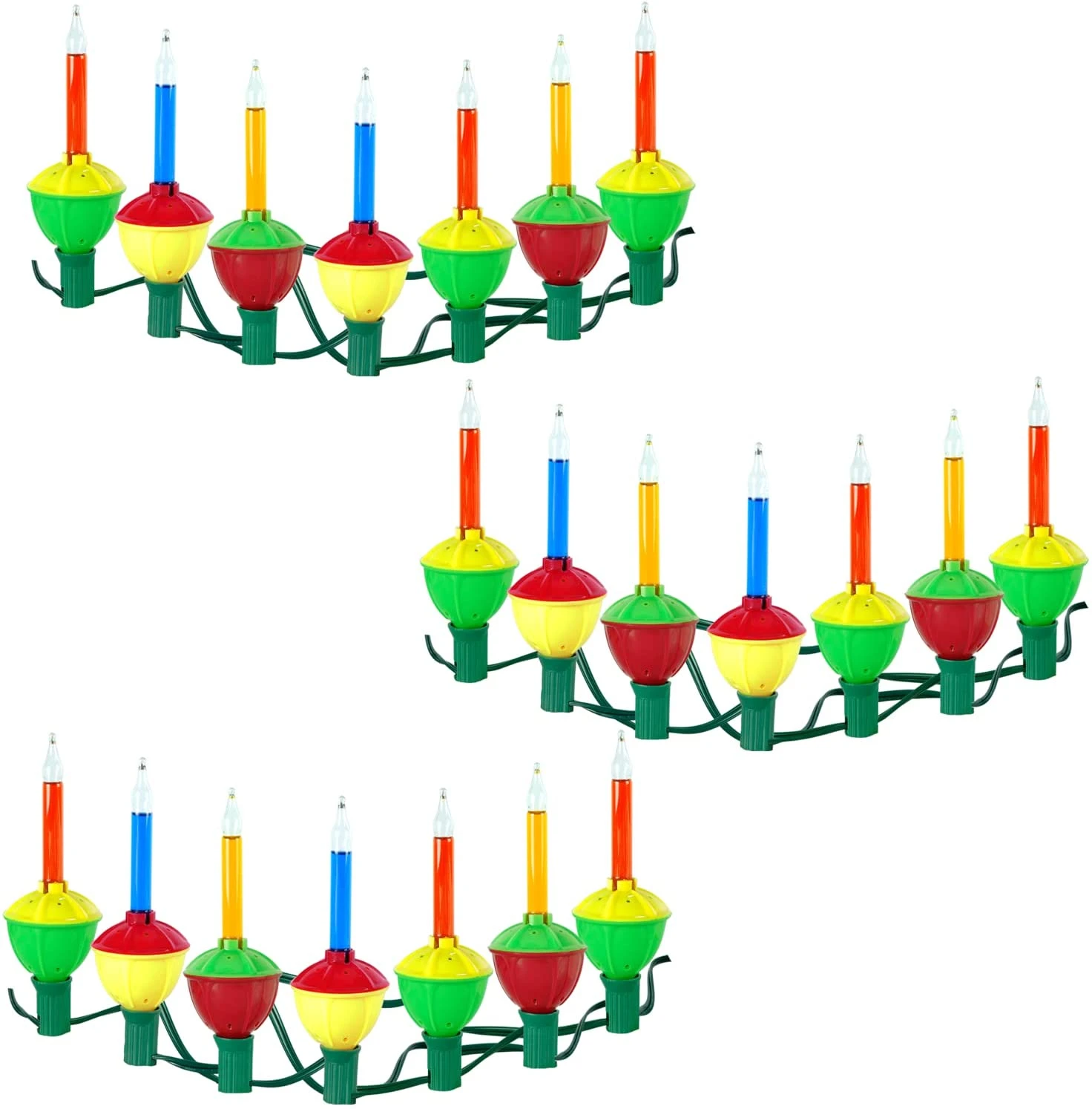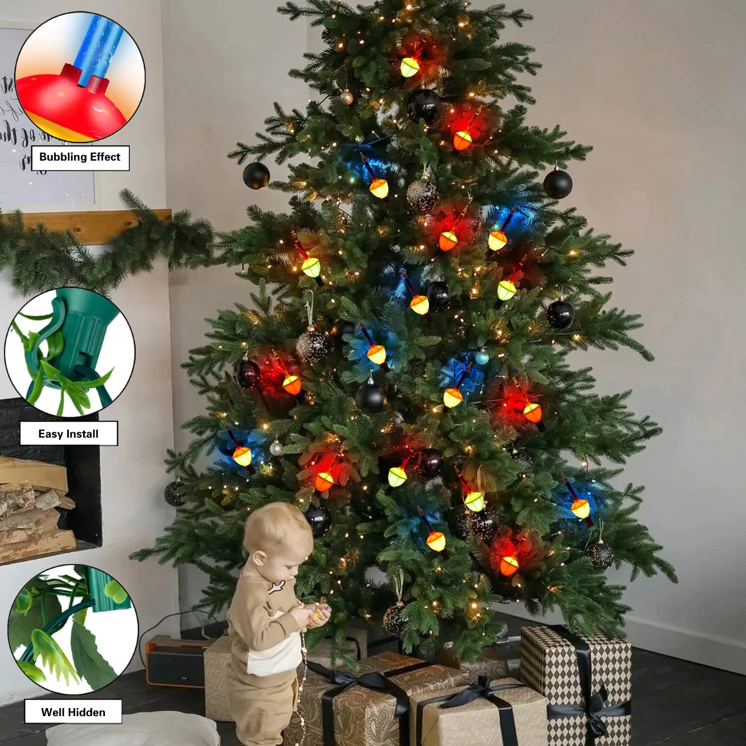 - Our cool-looking Christmas lights set includes 3 packs of 7-count Multicolor Christmas Bubble Incandescent String Lights. Each strand measures at 7FT long with a bulb size of 1.86in*1.86in*5.39 in and 11 inches bulb spacing.