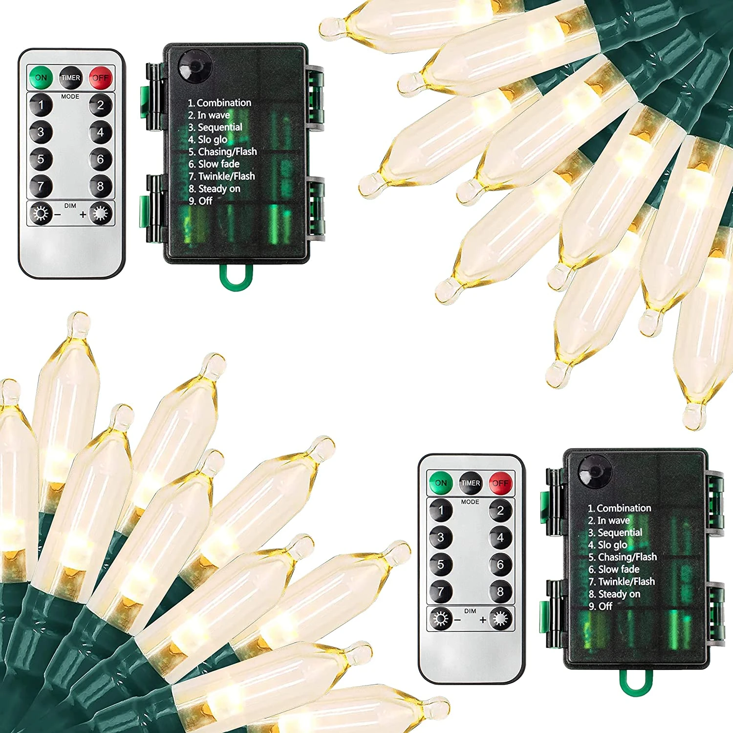 - Easy to install. These string lights have a flexible and durable green wire making it easier and more convenient to hang everywhere. It also allows end-to-end connections to extend your light decor and make your place much brighter and alive. It can work in 8 different lighting modes which you can also change as you want. Premium quality. Made of durable and high-quality materials to withstand any type of weather. Safety test approved. This is ul-certified making it safe to use.