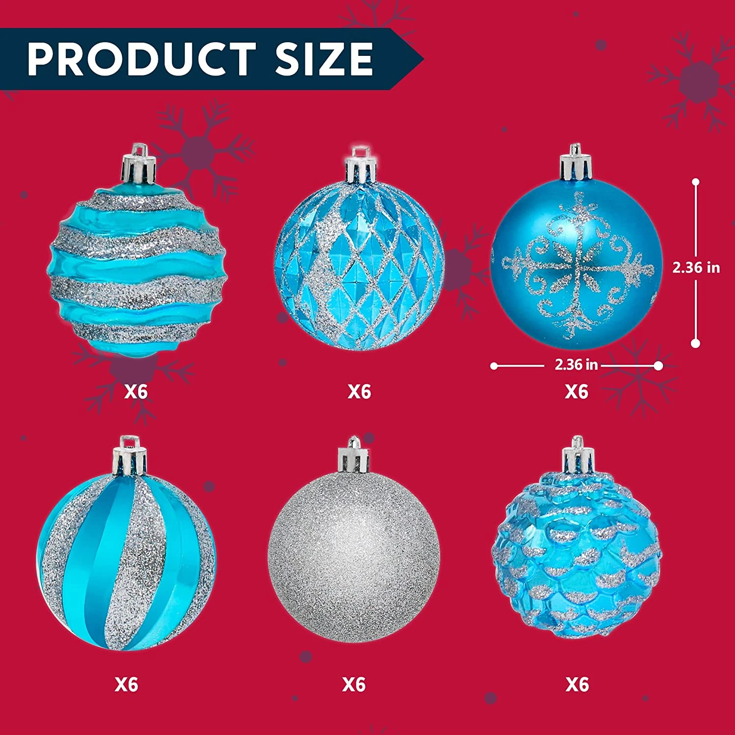 - REAL FUNCTION. These Christmas Party Decorations feature a 36 count shatterproof Christmas balls set measuring 60mm. It is made with shatterproof material for safety, durability, and longevity!