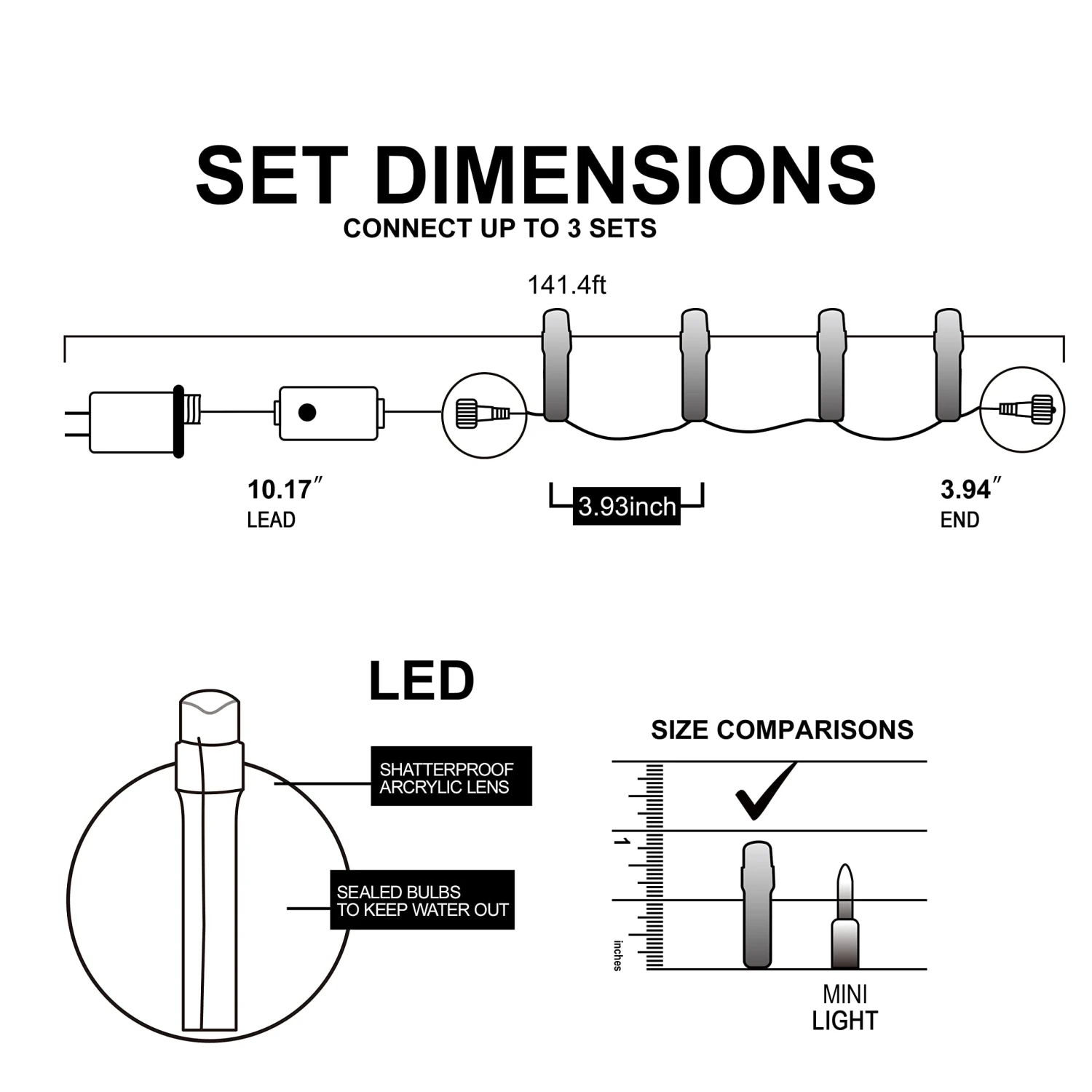 - Connect up to 3 sets: with the end sockets, these string lights could be extended up to 3 sets. These are made of high-quality material, with durable insulated wire, our product could be used for a long time.