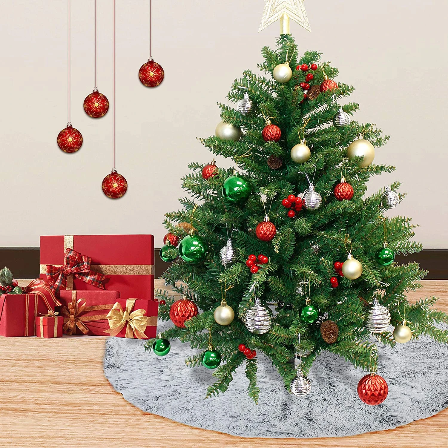 - BEST CHRISTMAS DECORATION – Bring a holiday cheer to your house with JOYIN Grey Faux Fur Tree Skirt