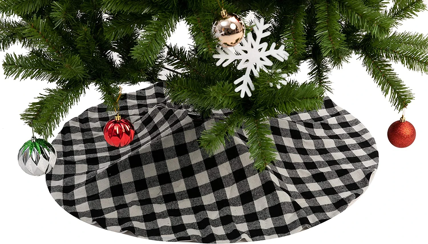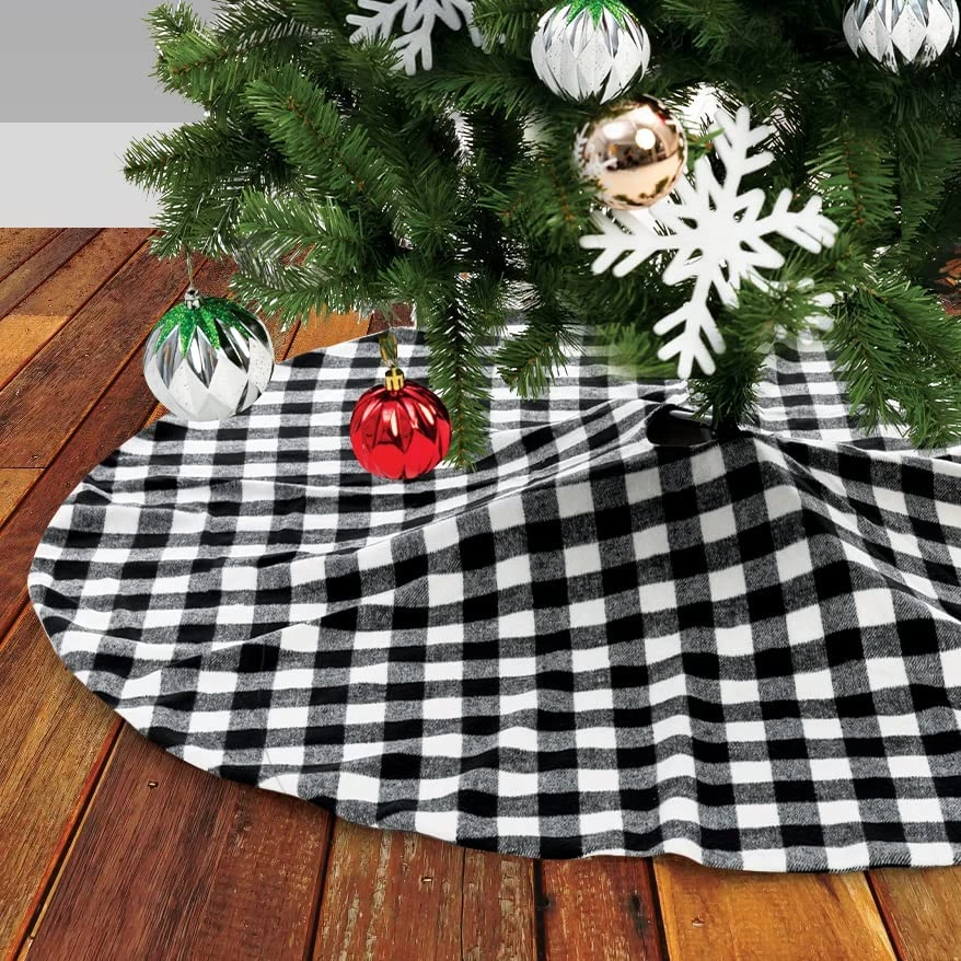 - SUPER VALUE PACK. Our Christmas Tree Skirt includes 48 Inch full-size high-quality classic country plaid tree Skirt (White), large enough for most Christmas trees.