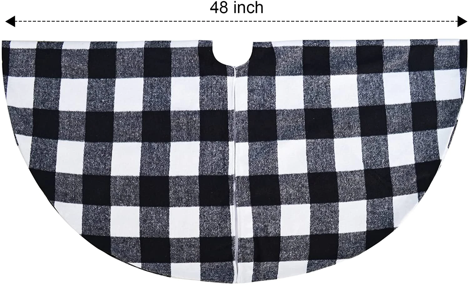 - Our Christmas tree ornament includes a 48″ thick plaid white buffalo check tree skirt.
