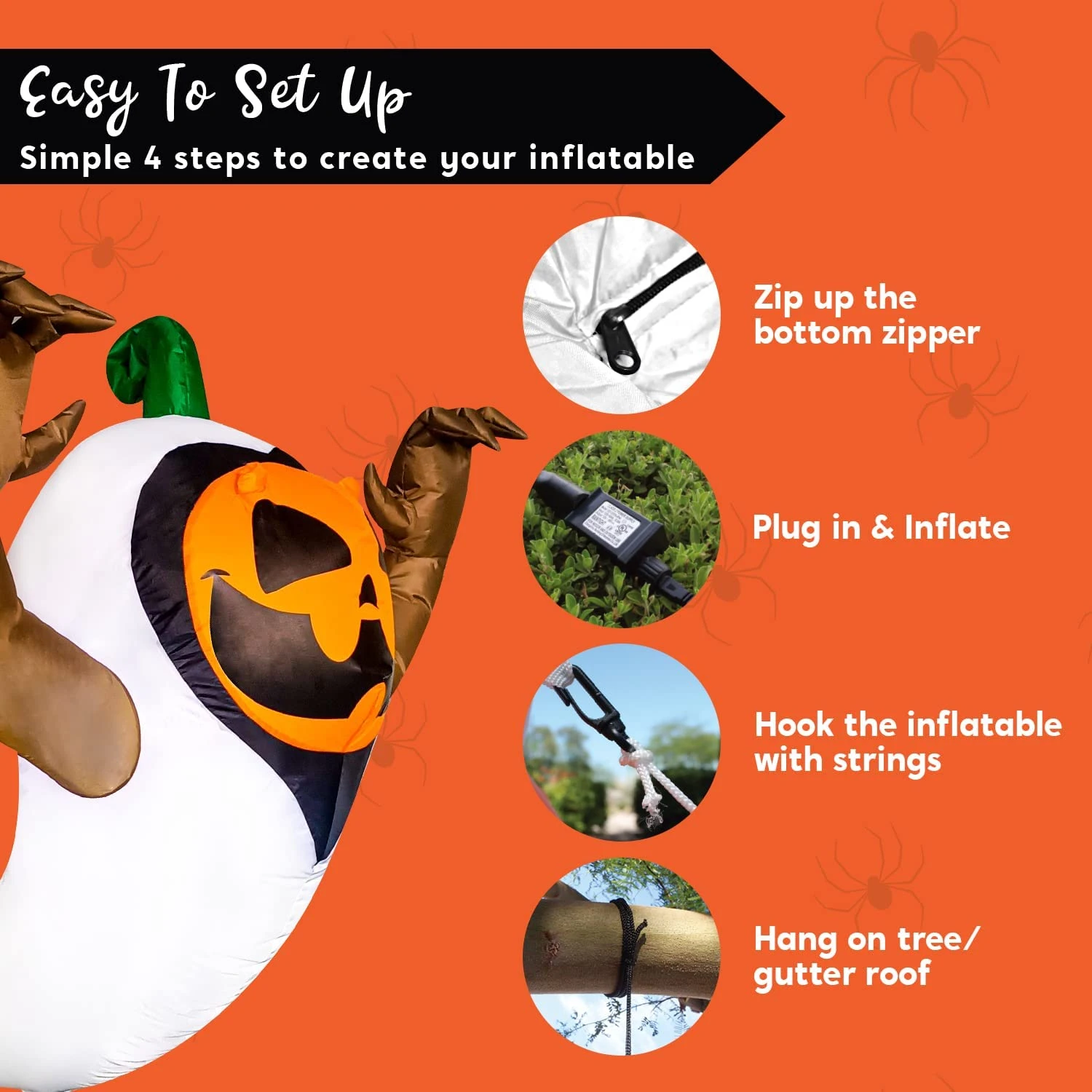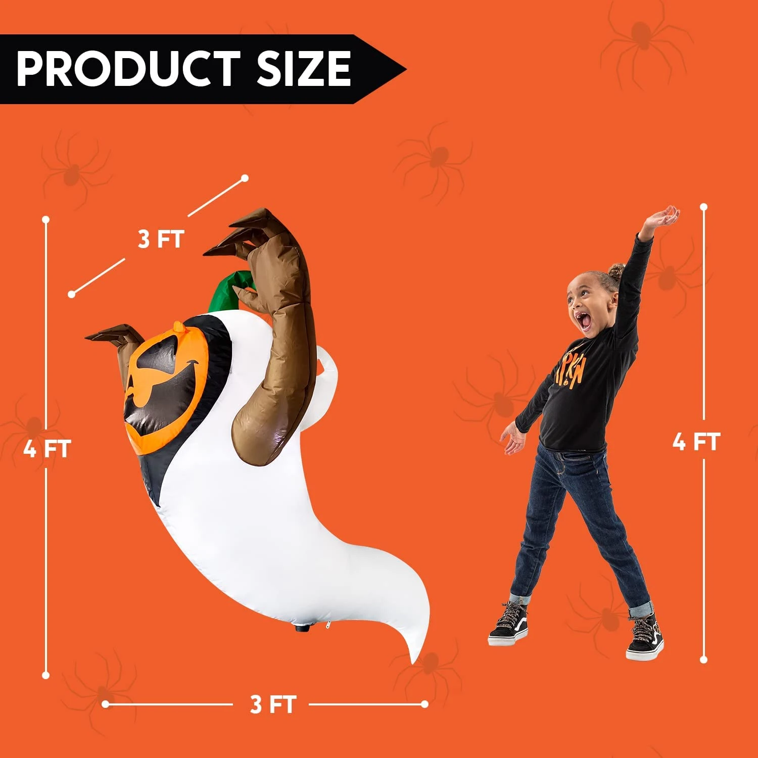 - Our 4 Feet tall pumpkin in a ghost costume Halloween inflatable comes with extended cords, fastened ropes, and a plug with UL certification.