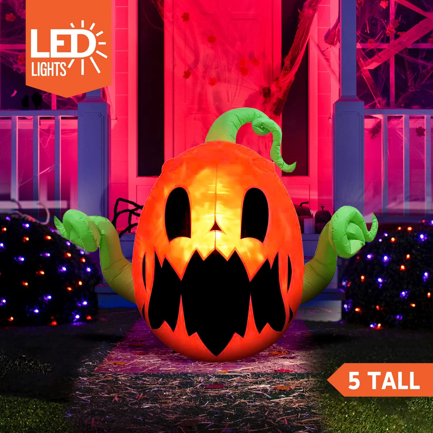 - Our 4 Feet tall scary walking pumpkin monster Halloween inflatable comes with extended cords, ground stakes, fastened ropes, built-in sandbags, and a plug with UL certification.