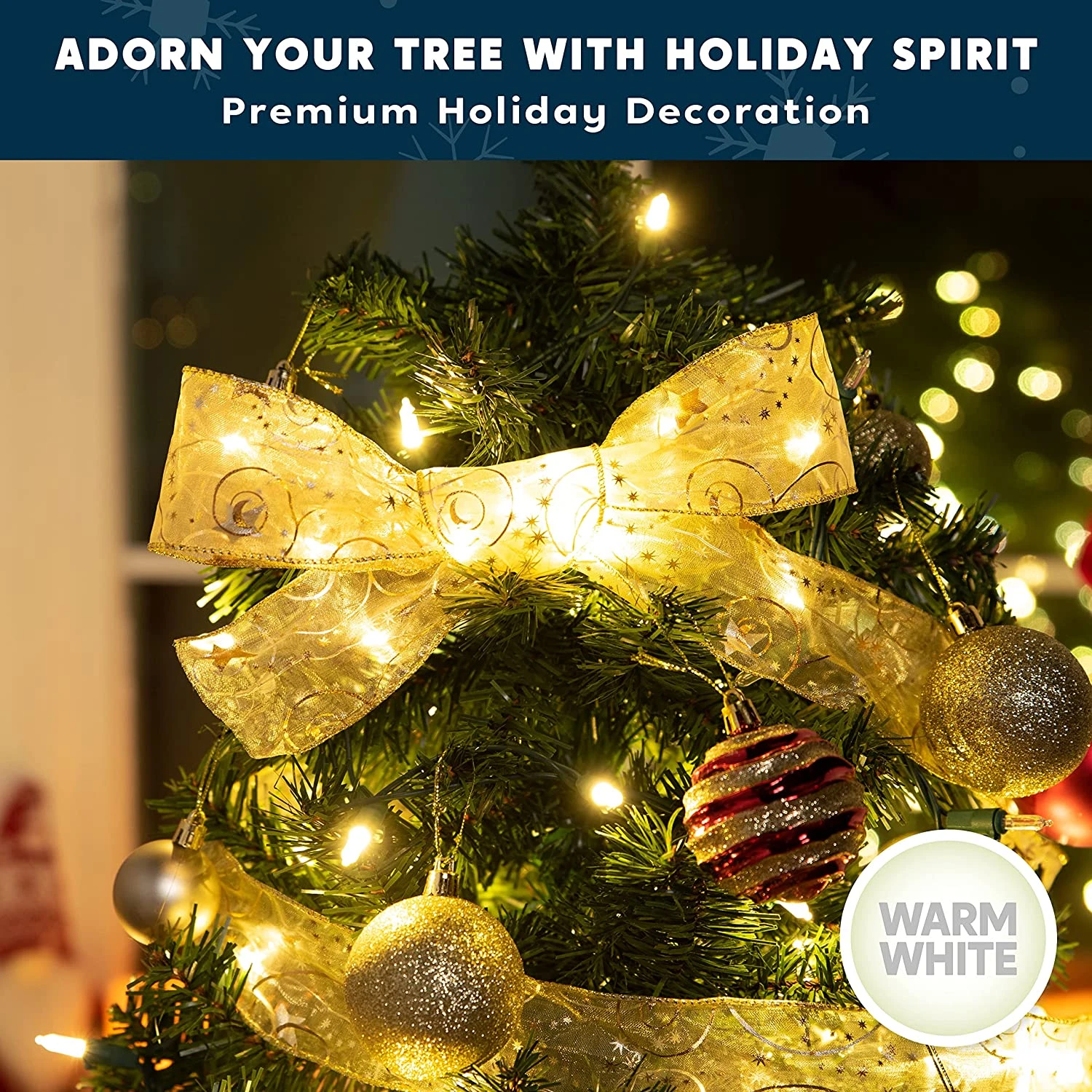 - Our fairy light is double layer designed with gold xmas pattern, 16.4ftx0.2ft 50LED, warm white is classic for a christmas party/garden/window/, you’ll need at least 2-3 packs for a normal christmas tree.