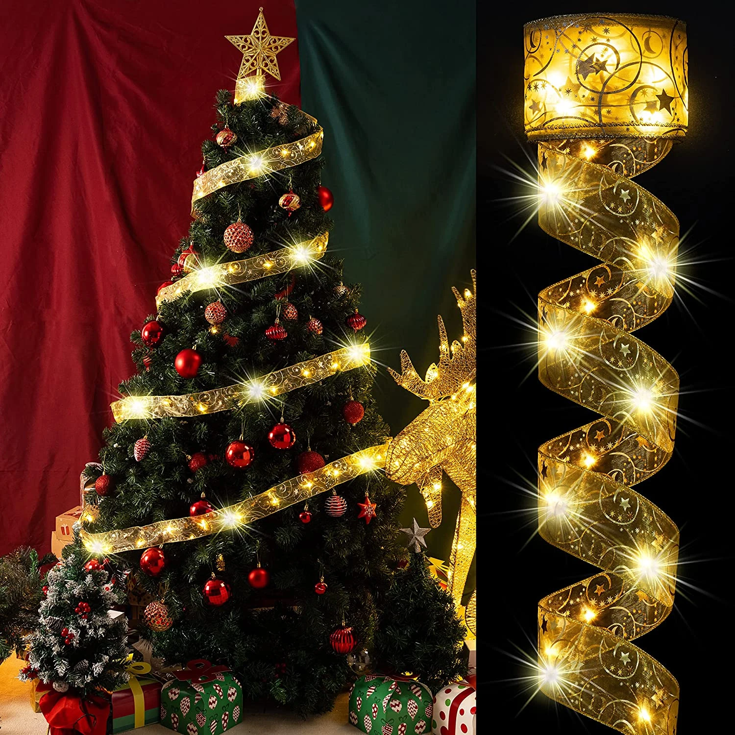 - DIY shape: the possibilities are endless with this christmas decor light, the shape can be changed in different needs. Each ribbon light exists independently, no plugs, decorate a christmas tree or gift can use multiple products at the same time, and remove freely.