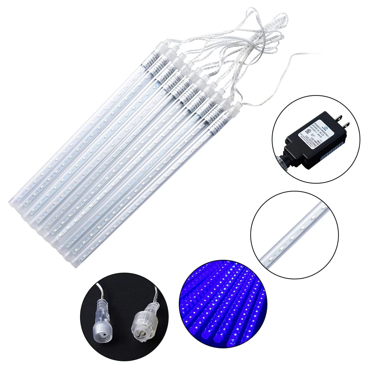 - Our holiday light decor includes 2 packs of drop icicle snow falling raindrop cascading lights with 540 LEDs 10 tubes 50cm/19.8inch outdoor decoration (blue)