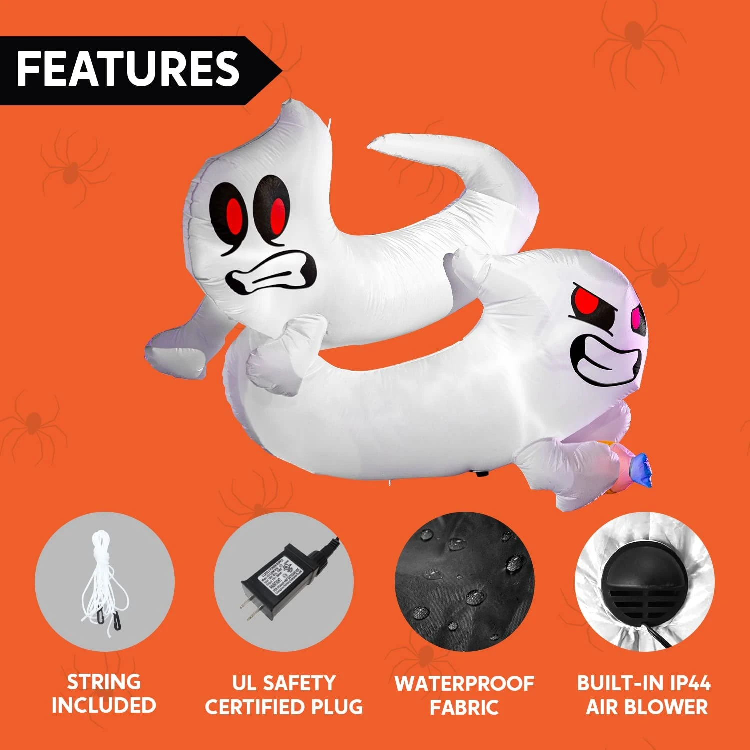 - Our 5 FT tall wicked hanging ghost fighting for candy, ghost inflatable with Build-in LED comes with fastened ropes, built-in sandbags and a plug with UL certification.