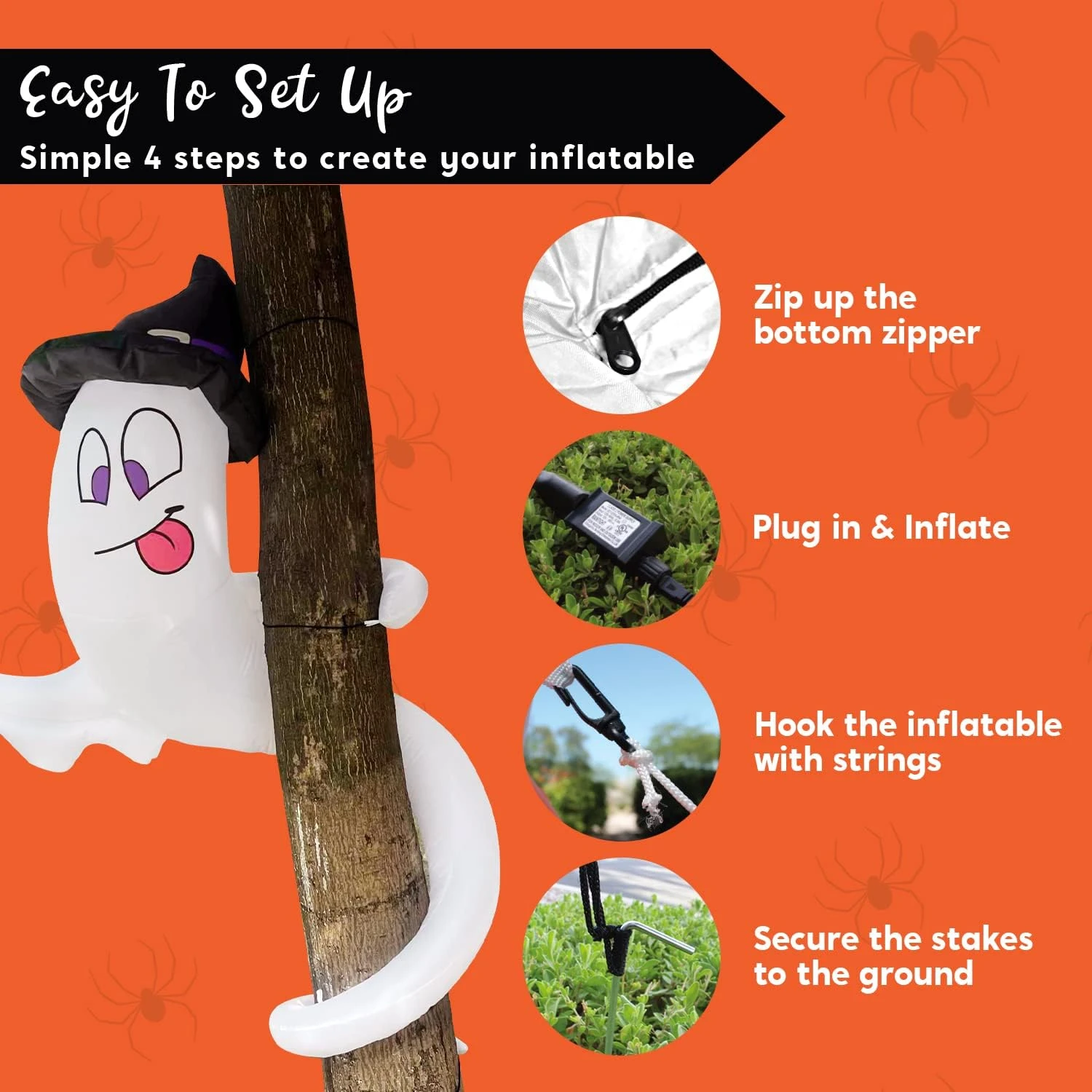 - Our petrifying 5 ft Tall Halloween Ghost Inflatable Tree Hugger that comes with an extended cord, fastened ropes,and a plug with UL certification.