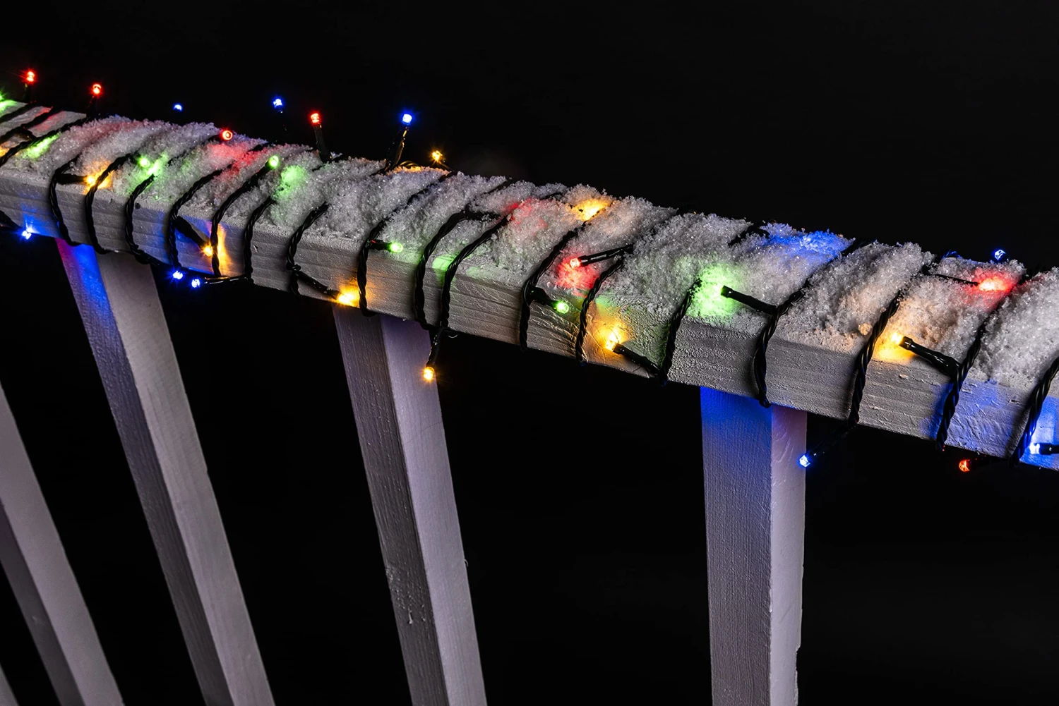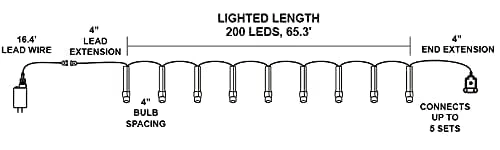 • Joiedomi LED Christmas String Lights has 200 bright Color Changing LED bulbs with green wire. Lighted length of 65.3 Feet. Featuring 10 lighting modes.