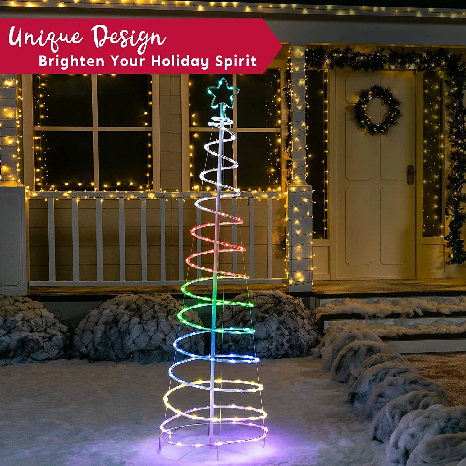 - Our Christmas LED Yard Lights includes a 6 Feet Tall Animated Lightshow Spiral Tree with 135 LED Multicolor Lights in Clear Wire, and Metal Stakes.