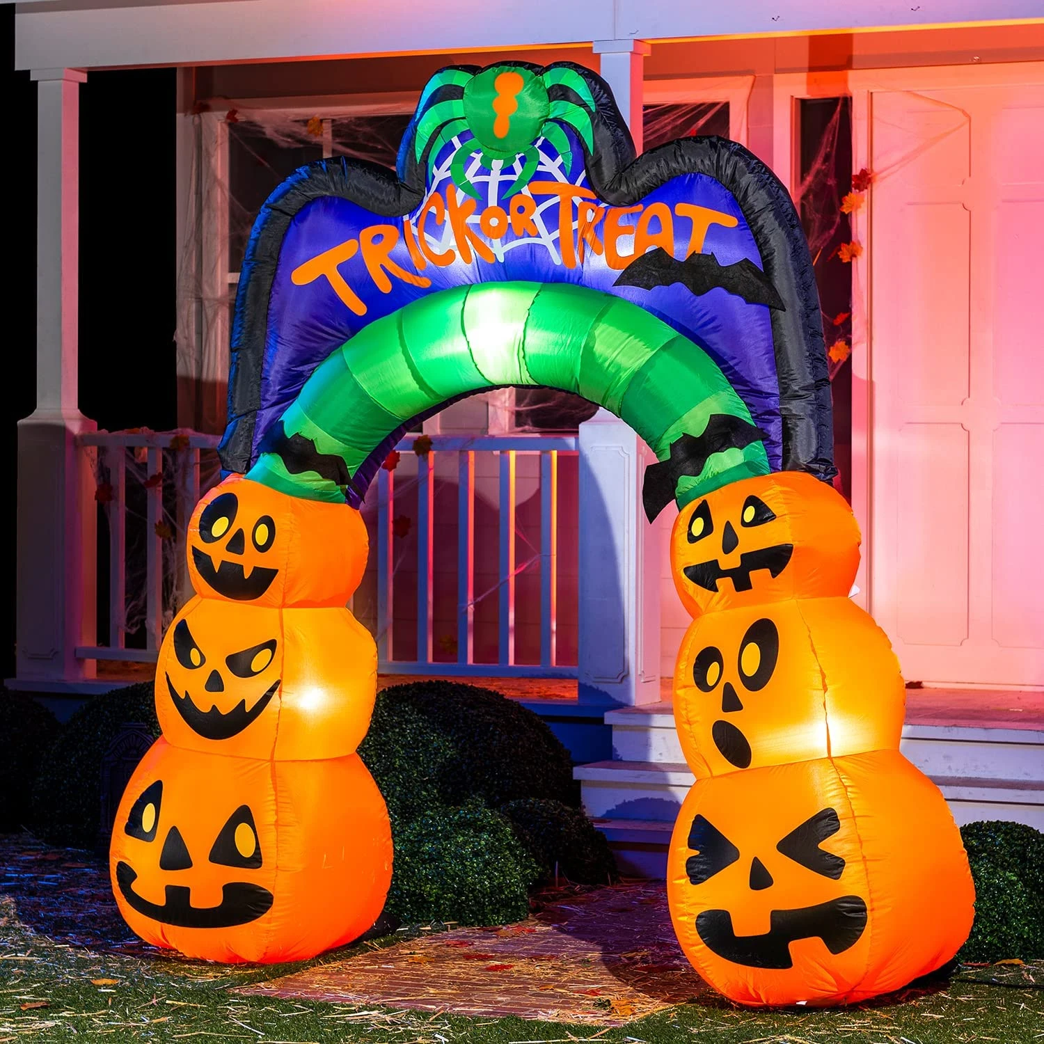 - Our 7 Feet tall Halloween inflatable arch decoration comes with extended cords, ground stakes, fastened ropes, built-in sandbags, and a plug with UL certification.