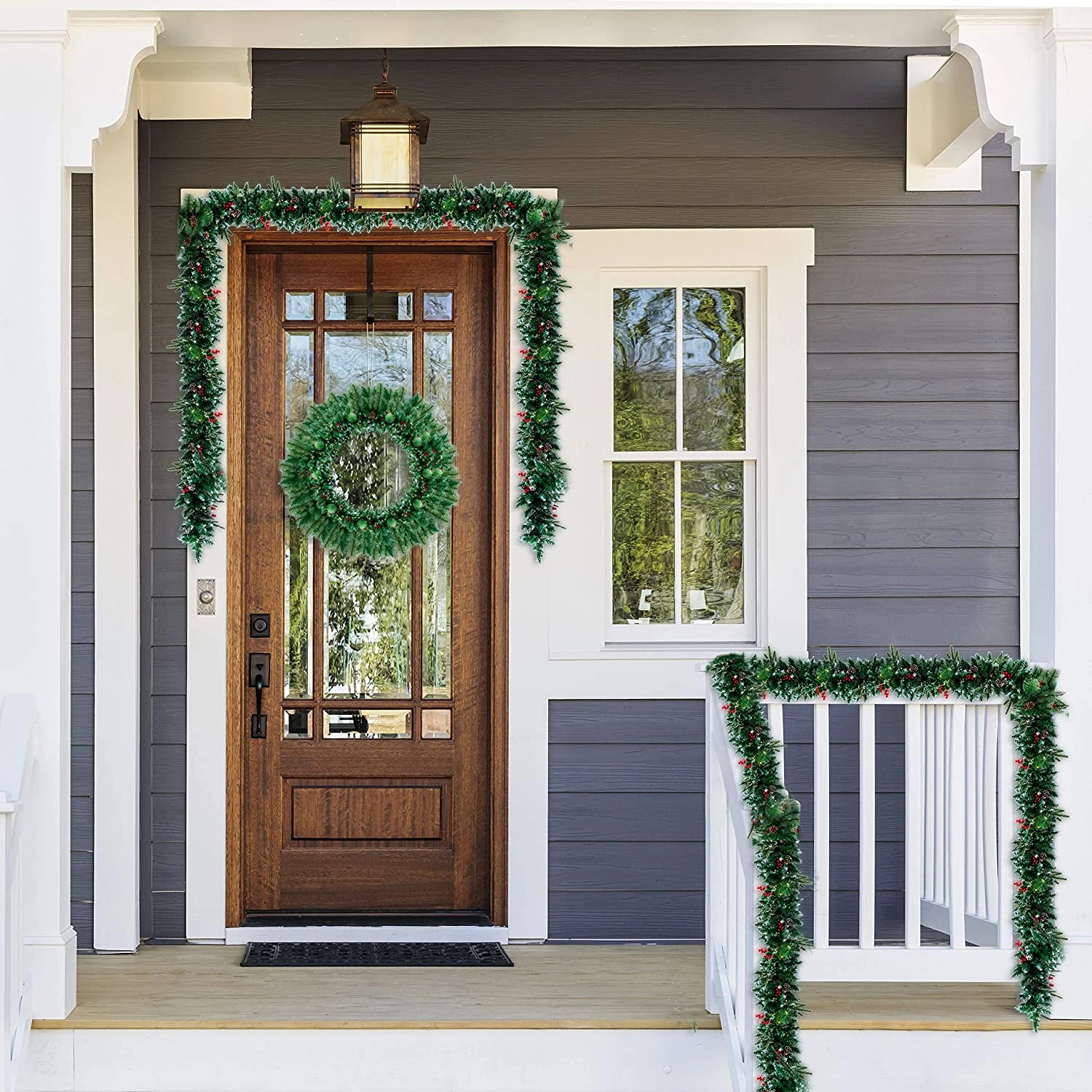 - NATURAL DESIGN: With the various ornaments like snow flock, pine cones & holly berries, Joiedomi prelit garland looks natural and classic