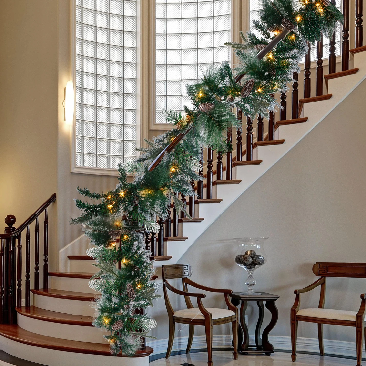 - Our pre-lit Christmas garland will brighten up the look of any room and makes a perfect addition to any home’s decor. Create Christmas cheer in your home with the beautifully designed decor you’ll want to put up year after year. Ideal for Christmas gifts, perfect for home, patio, lawn, and great for home decorations and Christmas trees!