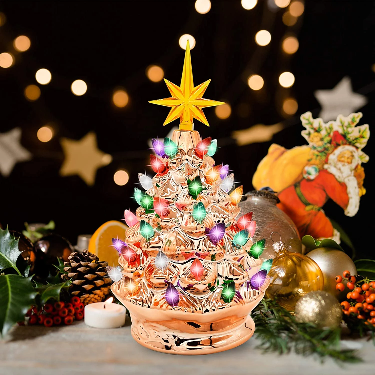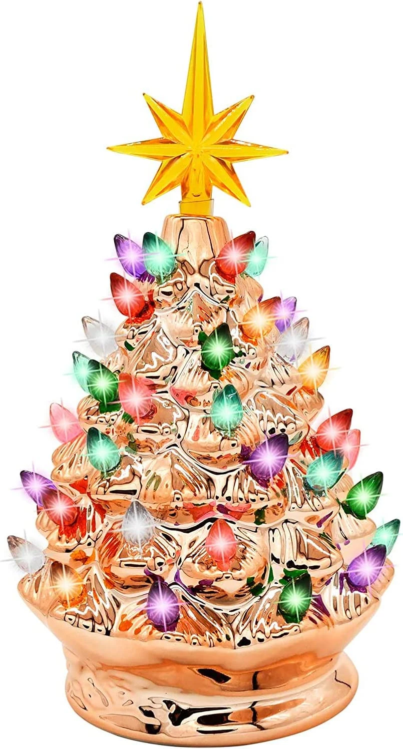 - SUPER VALUE PACK. Our Decorative Holiday Tree includes 1 Gold Ceramic Christmas Tree that measures 9 inches.