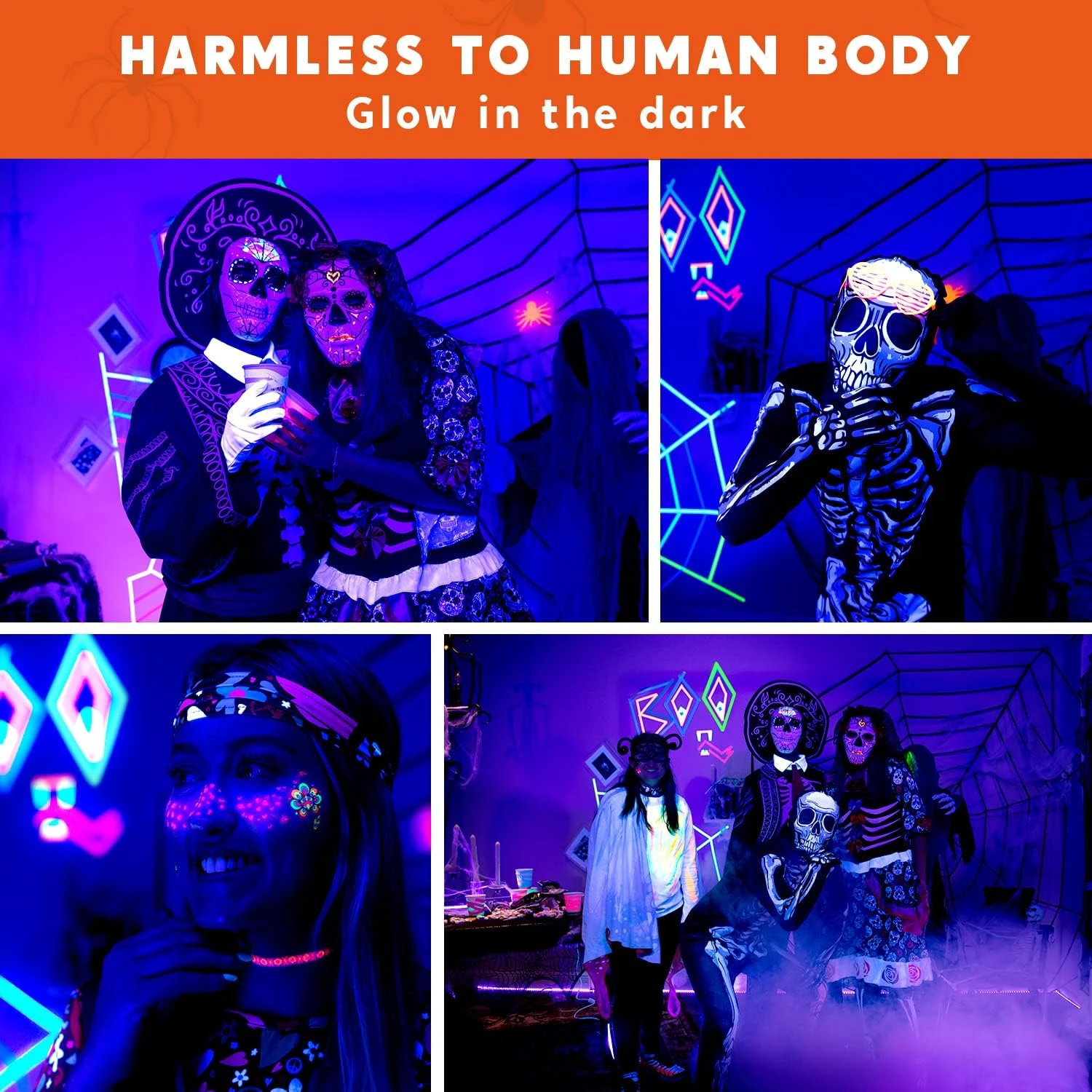 - Ideal decoration for most scenes. Perfect for halloween, christmas , club, party, aquarium, band, and body art. Ideal for body paint, fluorescent poster.