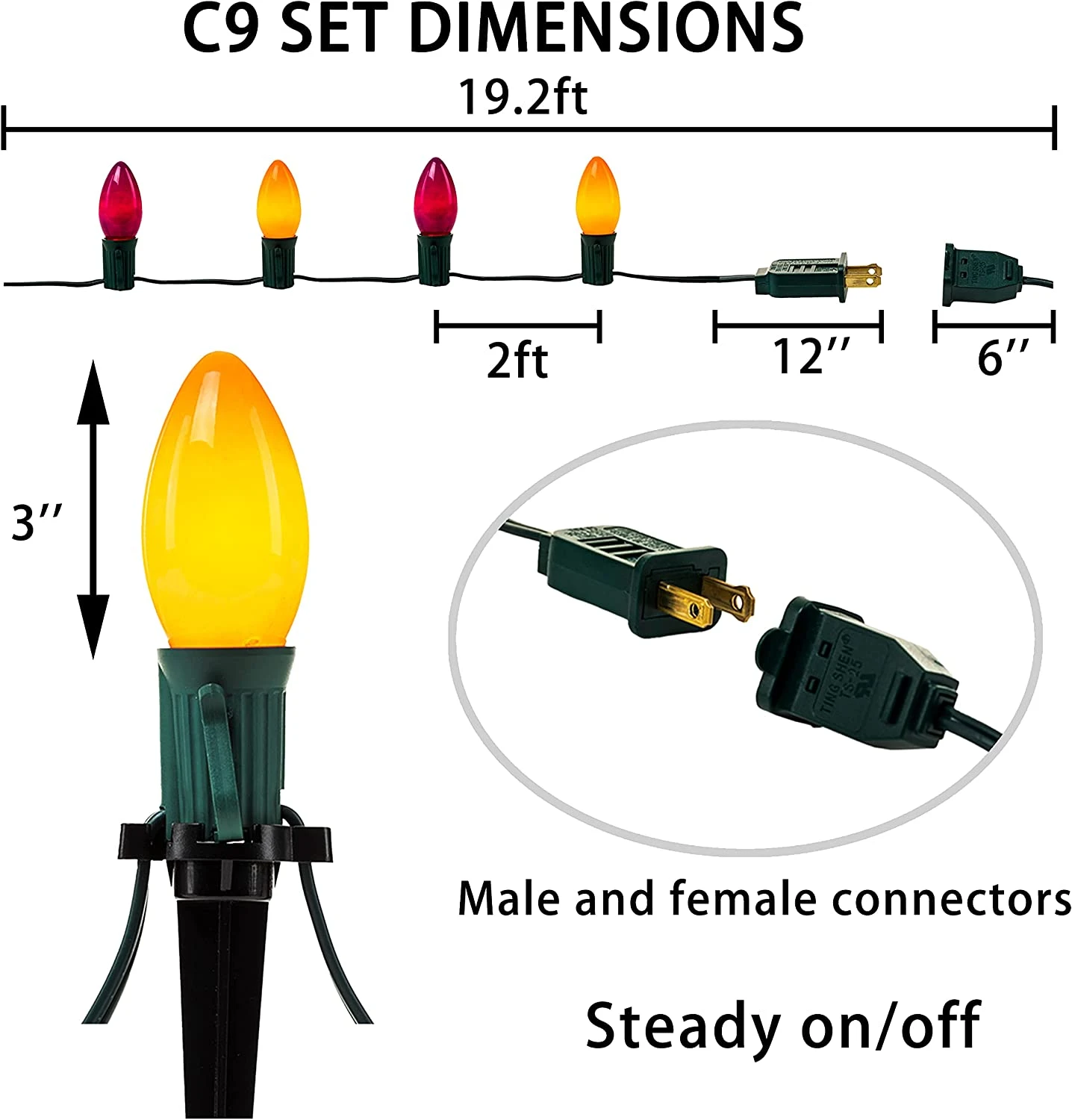 - Our Classic Halloween decor with C9 purple&orange Incandescent lights. This Halloween Incandescent lights Decoration brings your Halloween a spooky atmosphere.