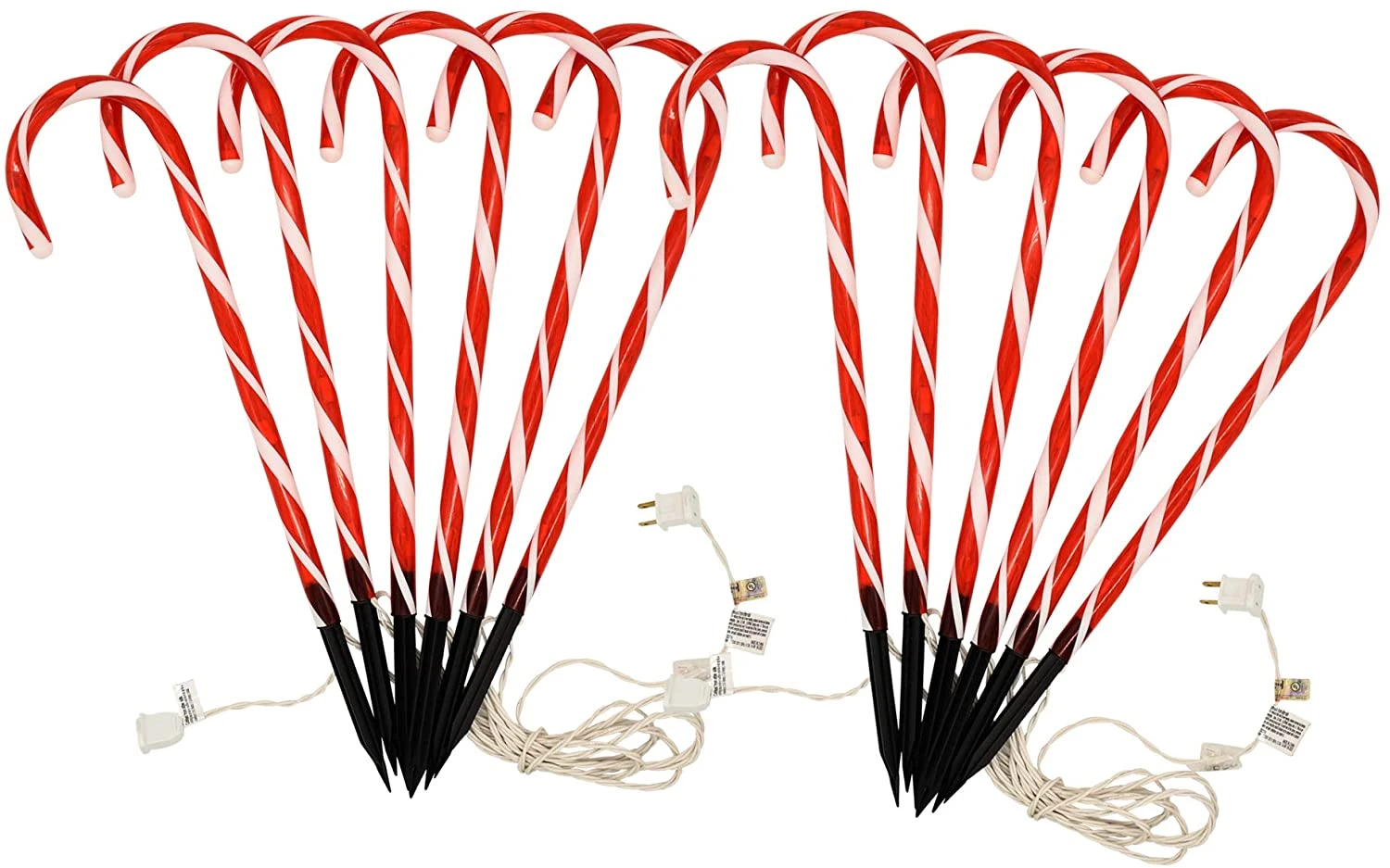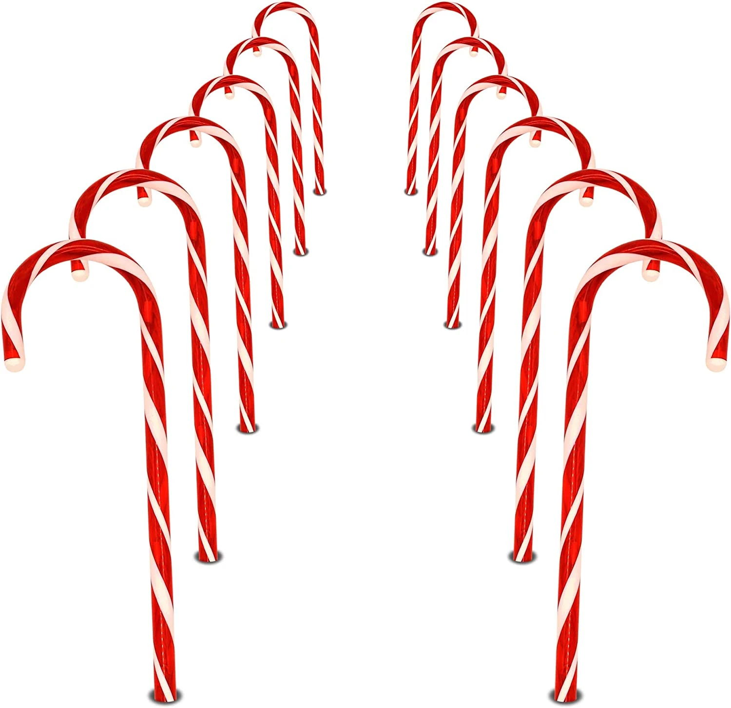 - JOYIN Christmas Candy Cane Pathway Markers Lights come with 12 pack of 12 inches large Christmas stakes lights