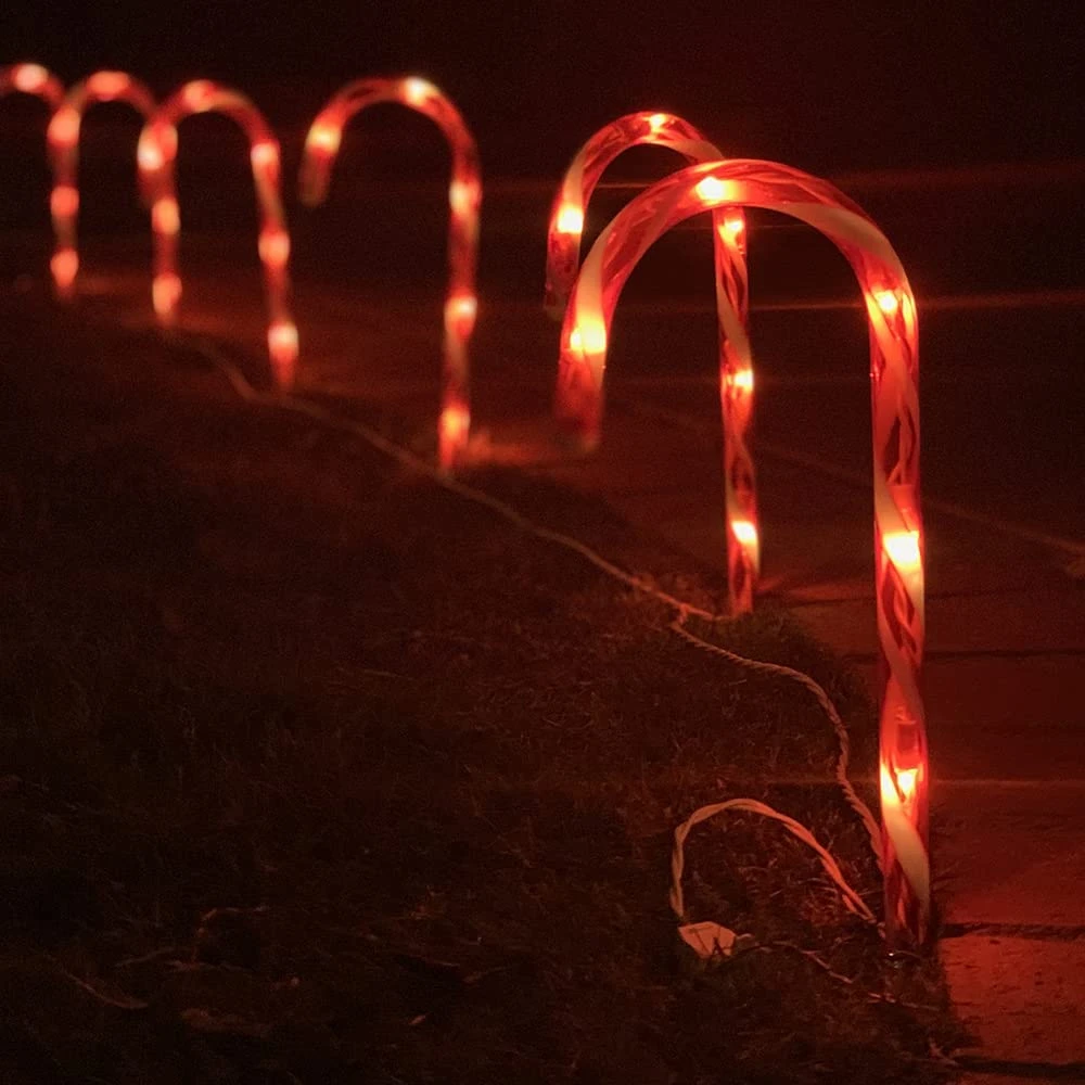 - PREMIUM QUALITY – Celebrate the Christmas season with this well made light-up Christmas Candy Cane Pathway Markers which include 6 lights in each cane
