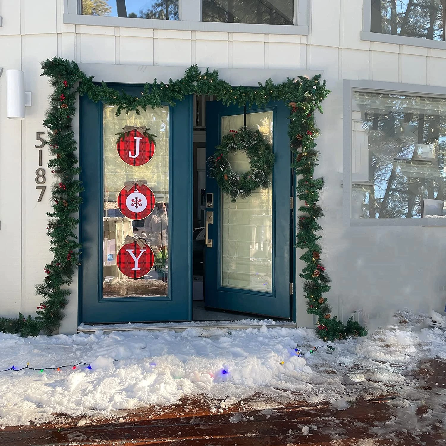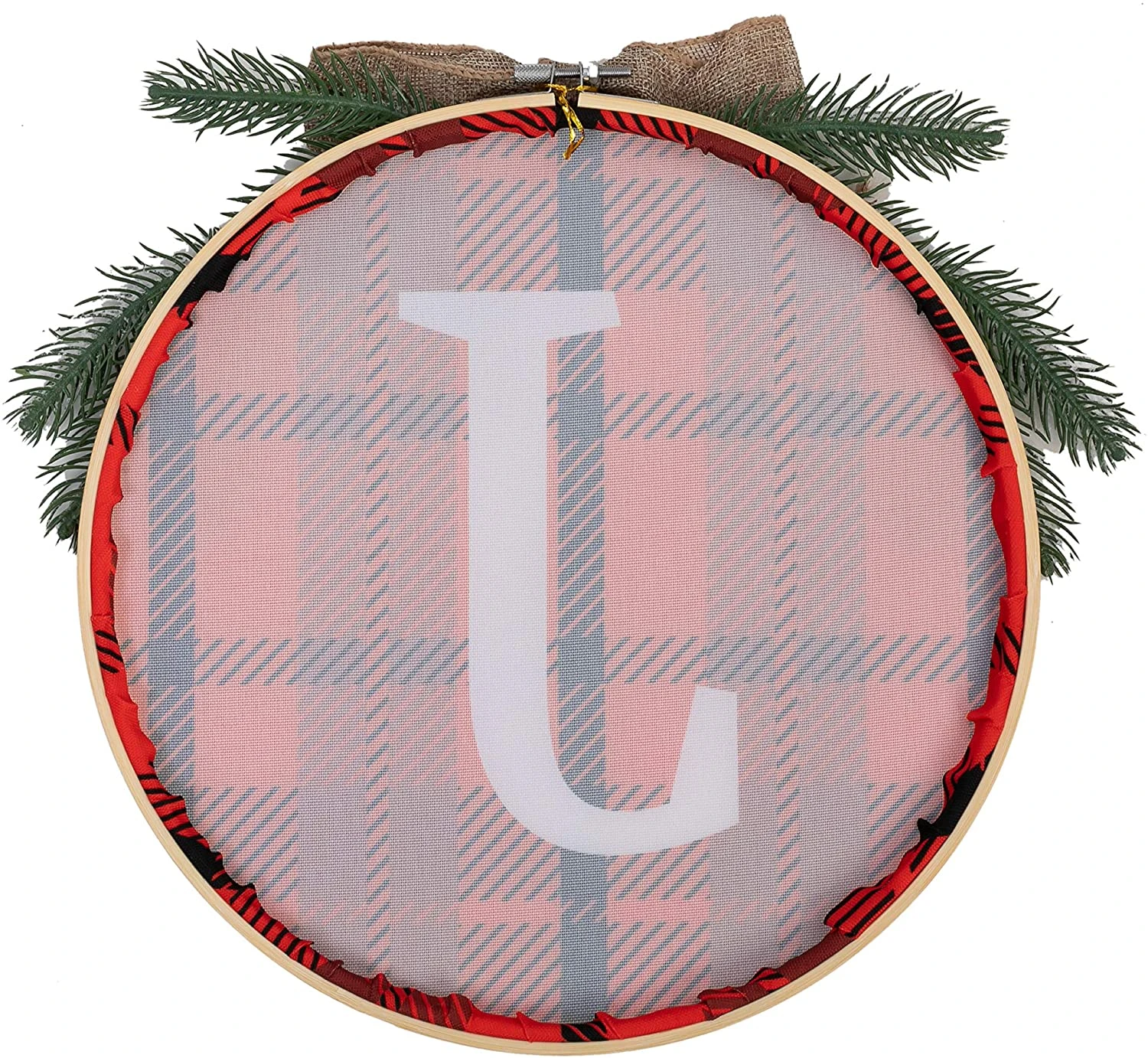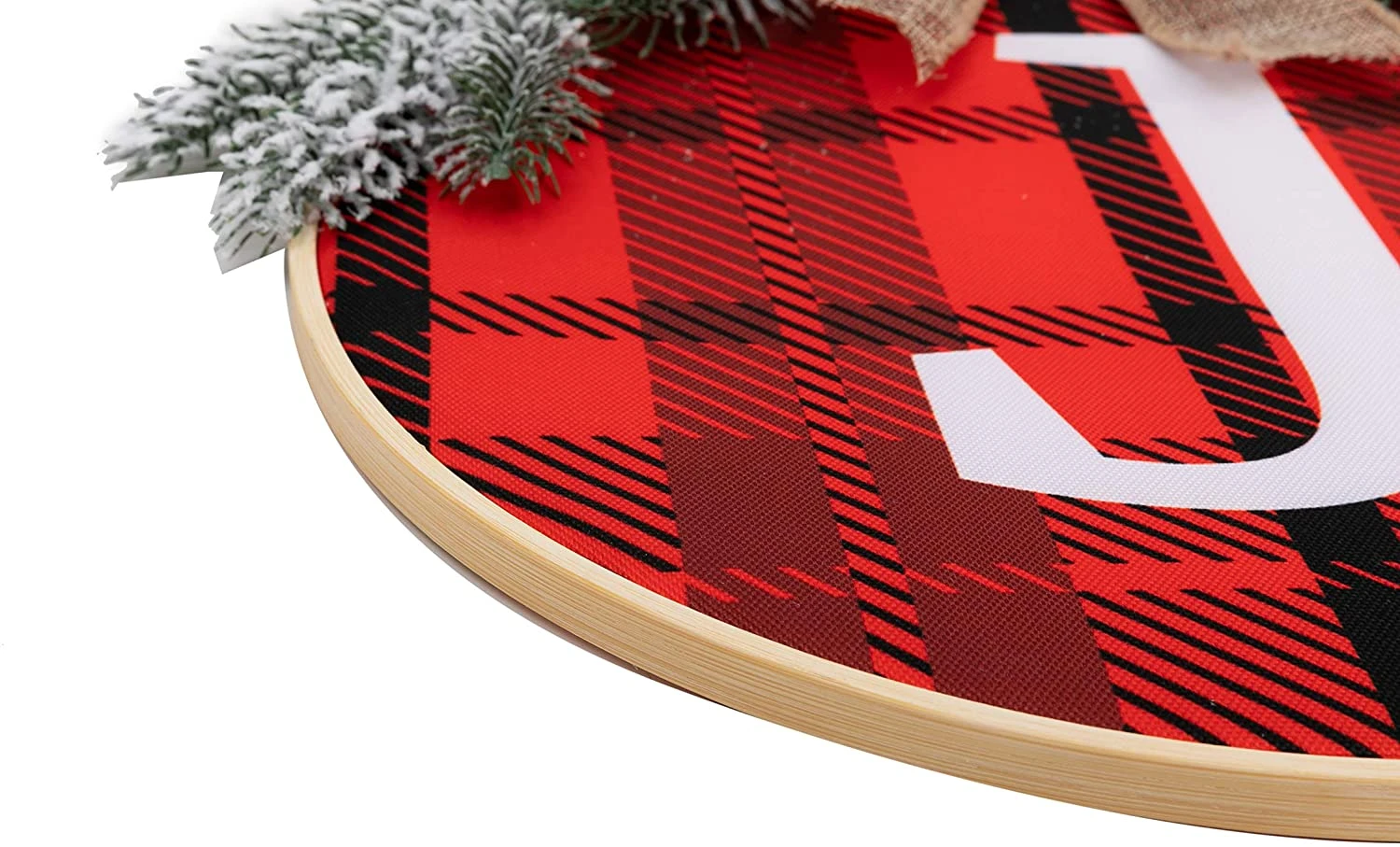 - XMAS DECOR: JOYIN 12” Christmas plaid wreath with a rustic wooden burlap bow and pine leaves that comes with jute twine strings. Let’s make a great festive addition to your Christmas and holiday decoration.