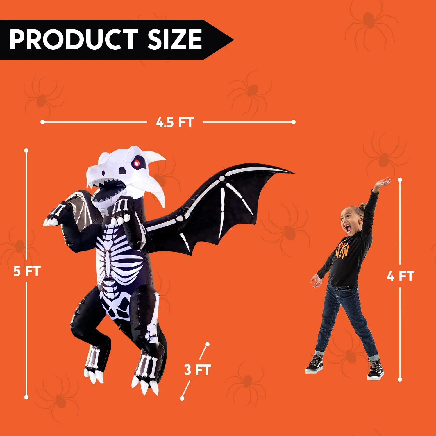 - Our 5 Feet tall halloween inflatable dragon comes with an extended cord, ground stakes, fastened ropes, built-in sandbags, and a plug with UL certification.