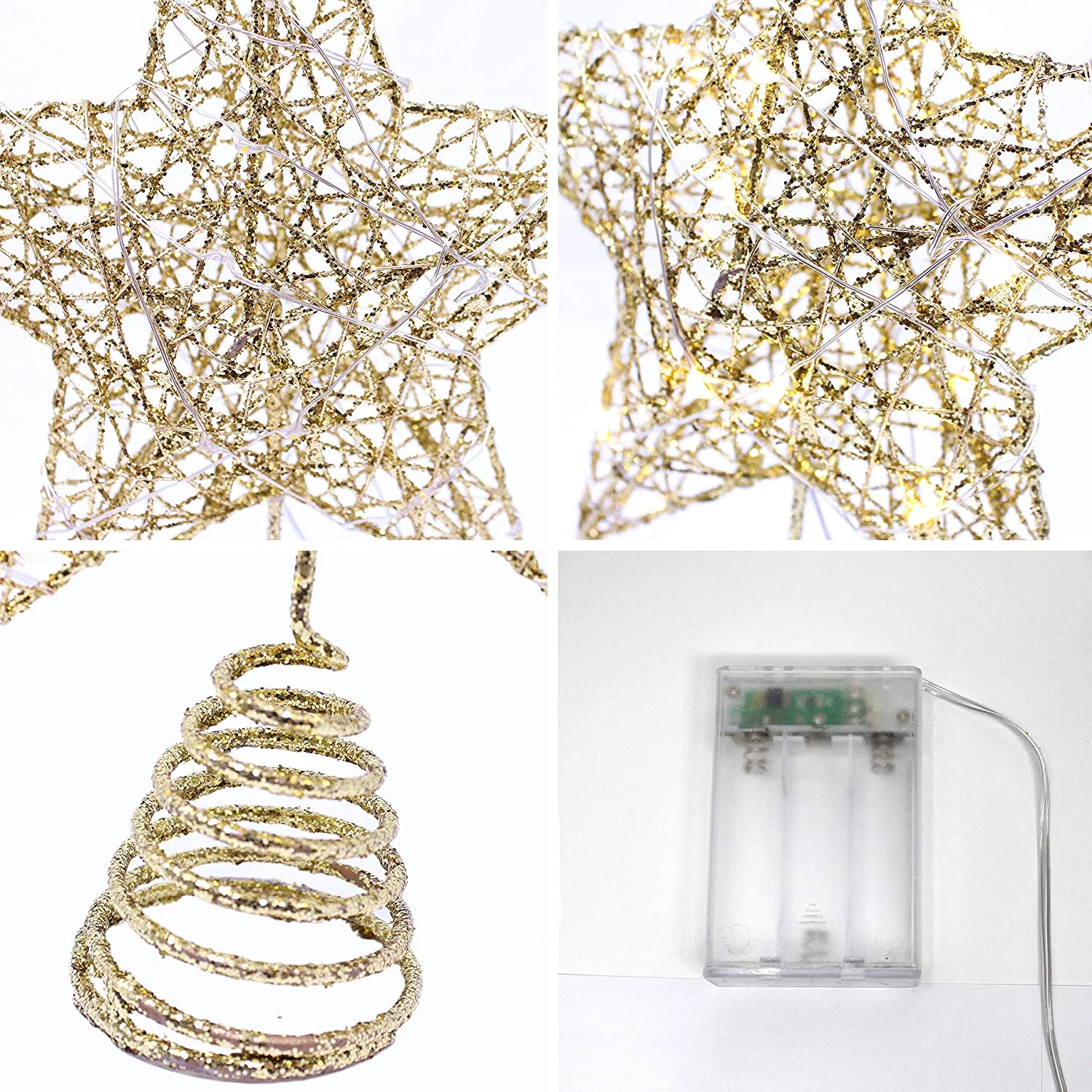 - CLASSIC DESIGN. Gold Glitter Star design with perfect size 7.9inch * 7.8inch. Brilliant shining with the gold glitter all covered the toppers, give you the best mood for Christmas day. Perfect fit for 6ft to 7ft Xmas tree.