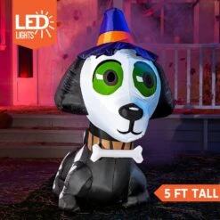 6ft Halloween Skeleton Dog Family Set With Trick Or Treat Flag