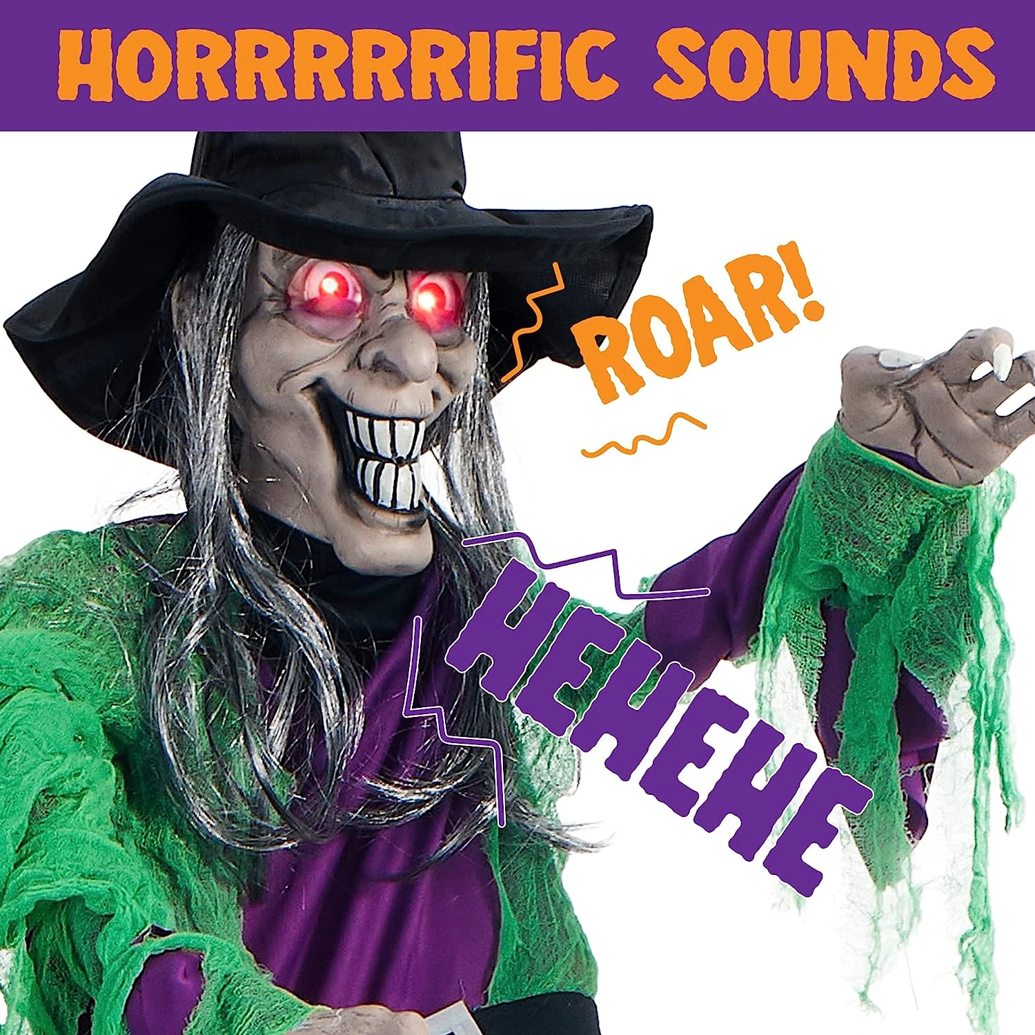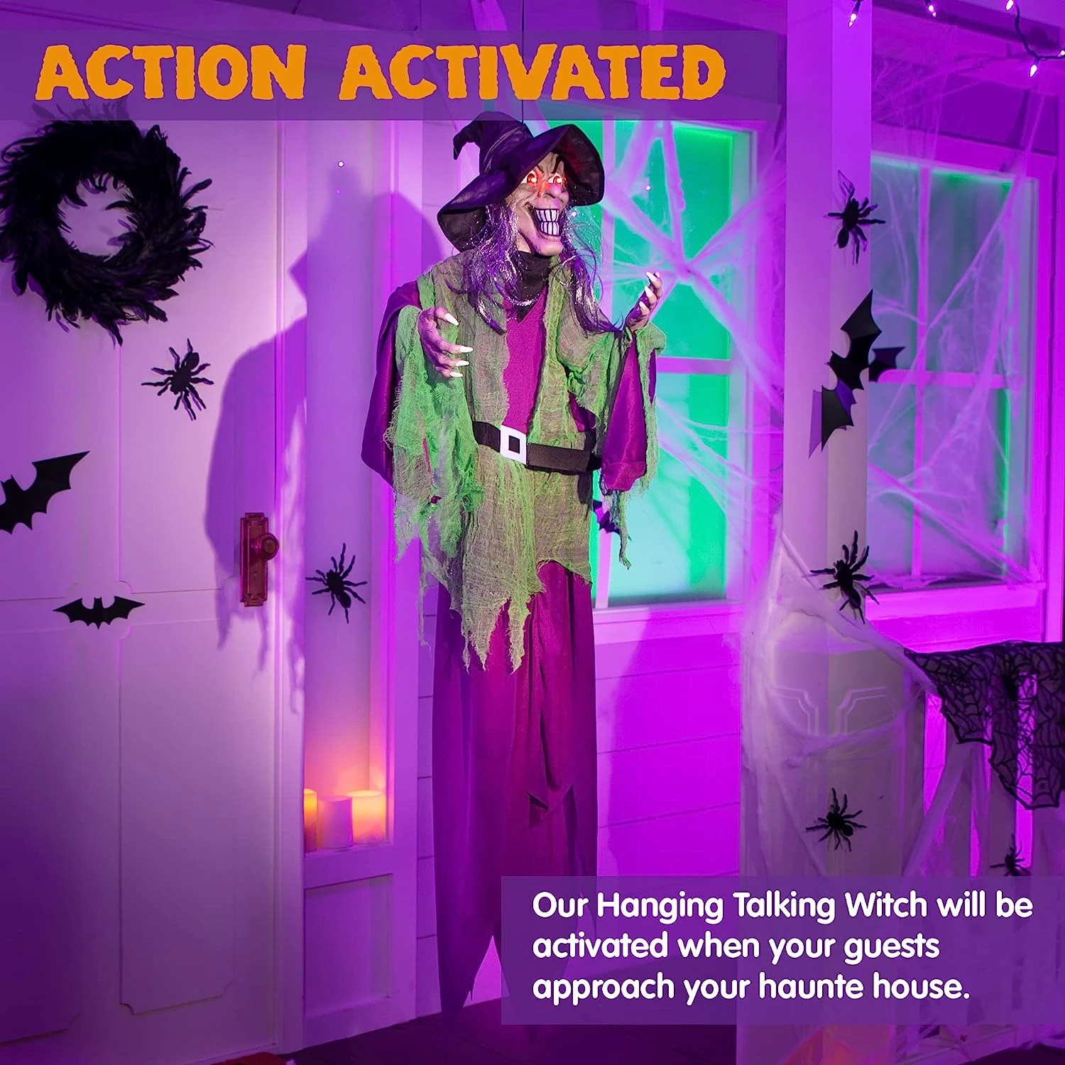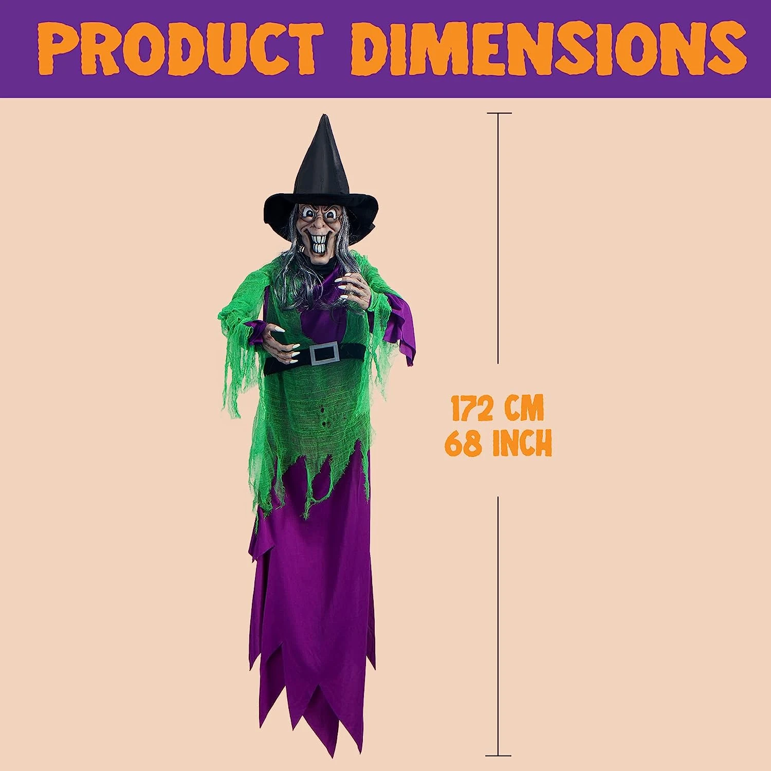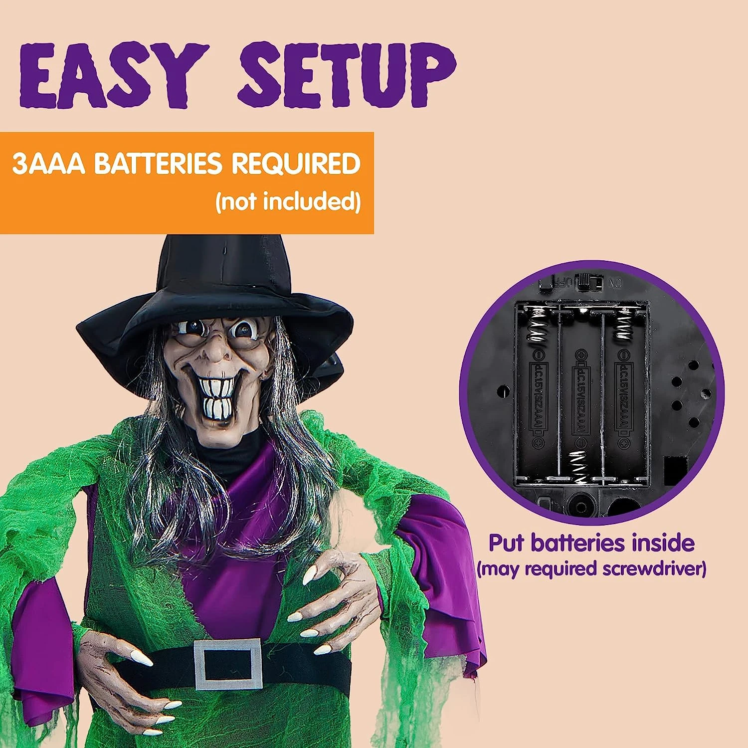 - Our Halloween Figure Life Size Witch features motion activated light-up red eyes witch with battery case, 3AAA battery not included