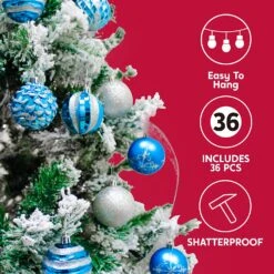 30Pcs Assorted Style Ball Ornaments – Blue & White & Silver 3.15in