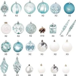 81 Pcs Assorted Shape Christmas Ornaments (Babyblue And White)