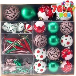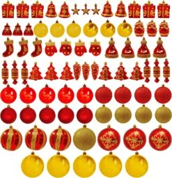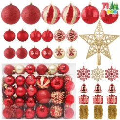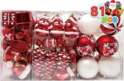 87ct Assorted Red & White Christmas Ornaments Set With Pine Corn