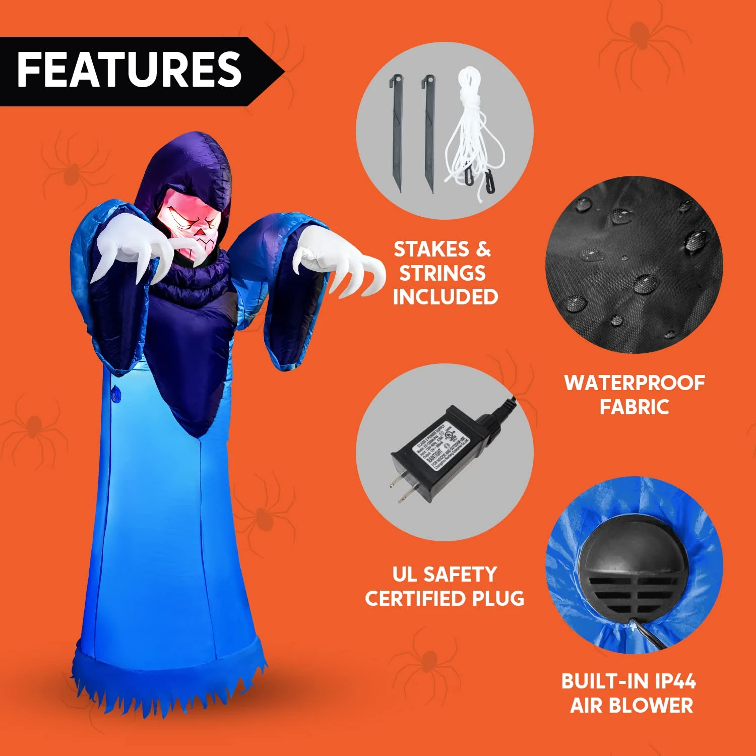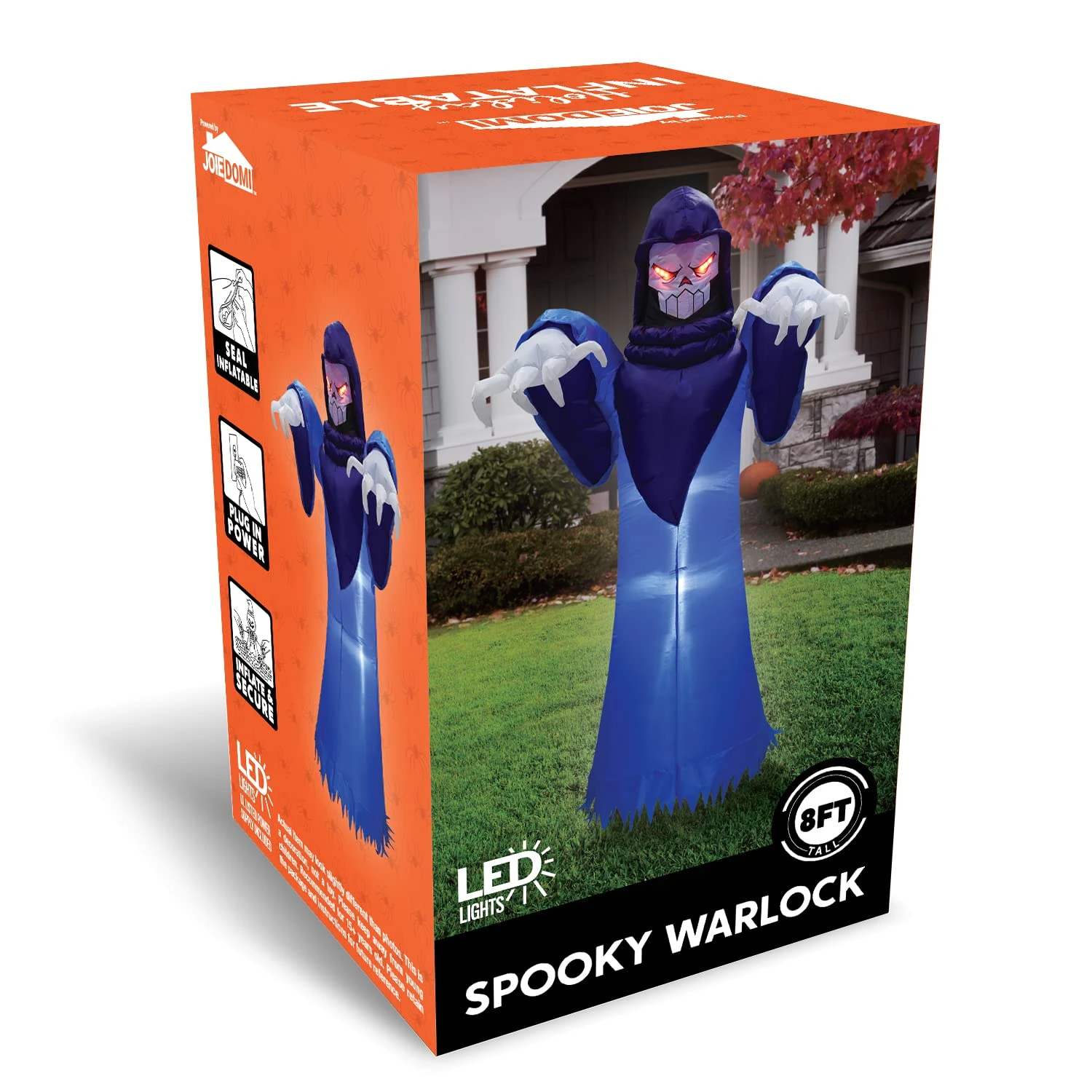 - Our 8 Feet Tall Inflatable Halloween Spooky Warlock. Spooky Convenient Halloween Holiday Yard Decoration comes in 10ft Extended Cord, Ground Stakes, Fastened Ropes, and Built in Sandbags.