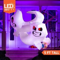 4 Ft Tall Scared Cute Ghost Hugging Tree Halloween Inflatable