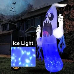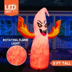6 FT Tall Halloween Cute Wizard Ghost Inflatable With Flaming Light