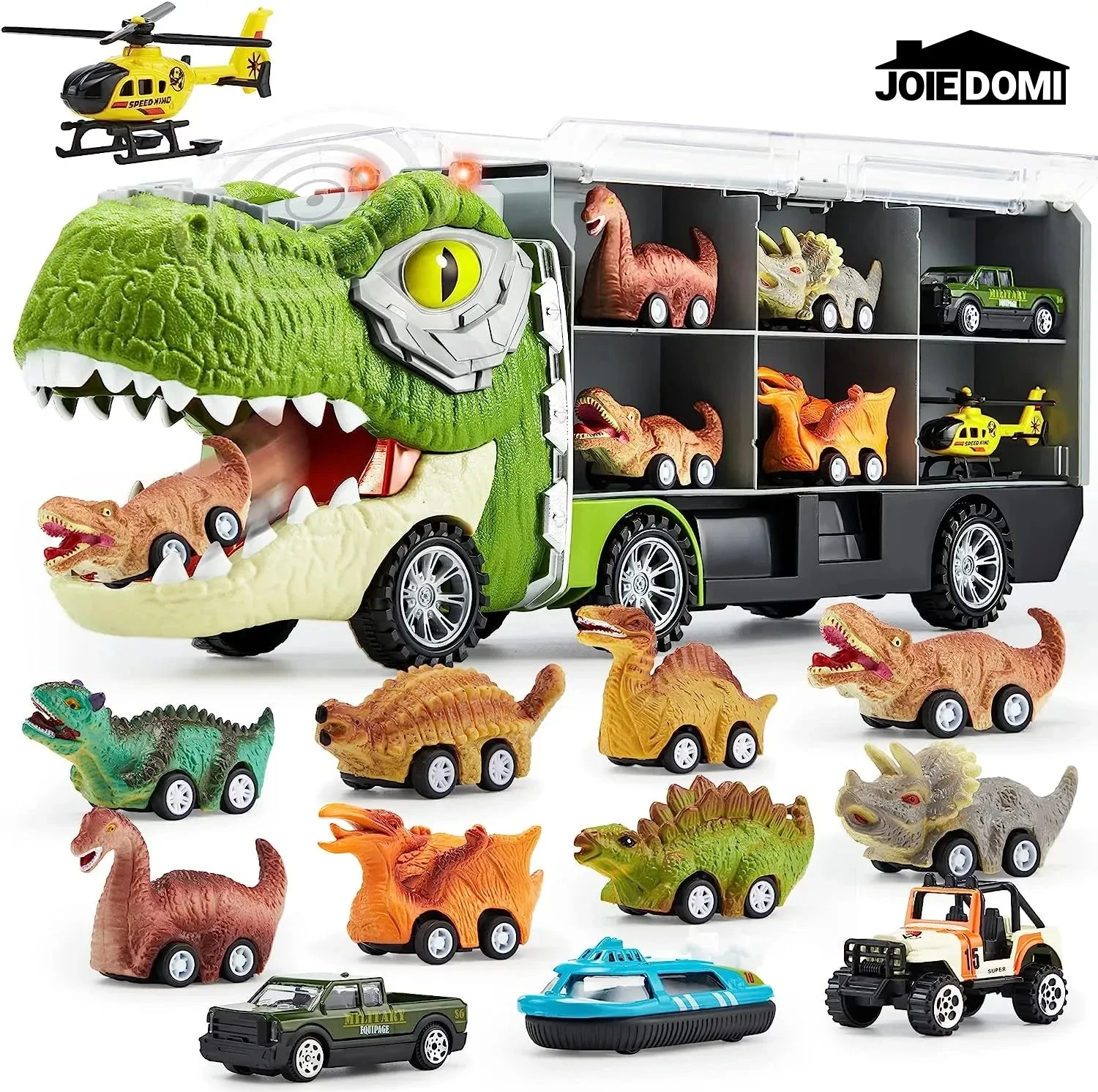 - MORE PLAY FUN OFFERED: With our flip-open truck head design, all 12 vehicles could slide in & out through it. Long-lasting engagement in practicing their hand & eye coordination, Dinosaur Toy learning, This Dinosaur Truck Carrier is a perfect Toy Truck Gift.