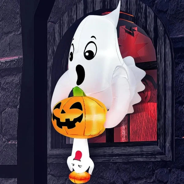 Applicable to Various Scenarios: Whether placed in a window, on your porch, outdoor or indoors, this inflatable decoration is versatile and adaptable to various settings. The cute ghost stealing a pumpkin creates an endearing and lively Halloween scene that fits perfectly into any Halloween-themed environment and it is a good Halloween outdoor decoration.