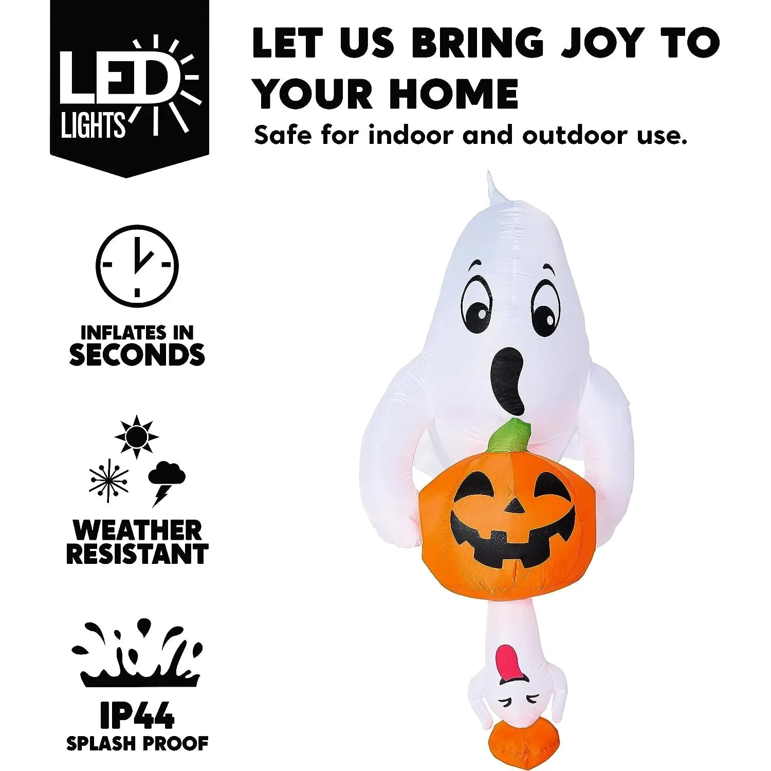 Powerful Functions: This blow up ghost decoration features built-in LED lights within the cute ghost, illuminating it with a captivating glow. The lights highlight the playful scene, adding a charming and magical element to your Halloween display.