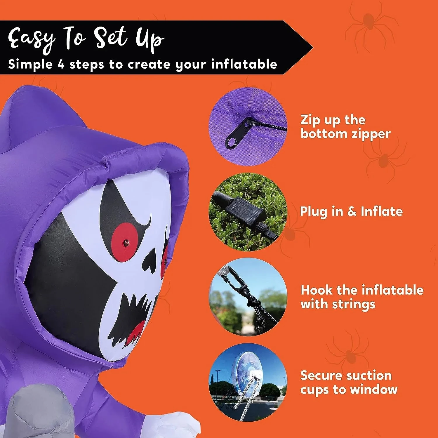 Ease of Use. We understand the importance of convenience, especially during the busy Halloween season. Setting up our blow up Grim Reaper is a breeze. Simply plug it in, and watch as it inflates within seconds. With its user-friendly design and clear instructions, you’ll have more time to immerse yourself in the frightful delights of the season.
