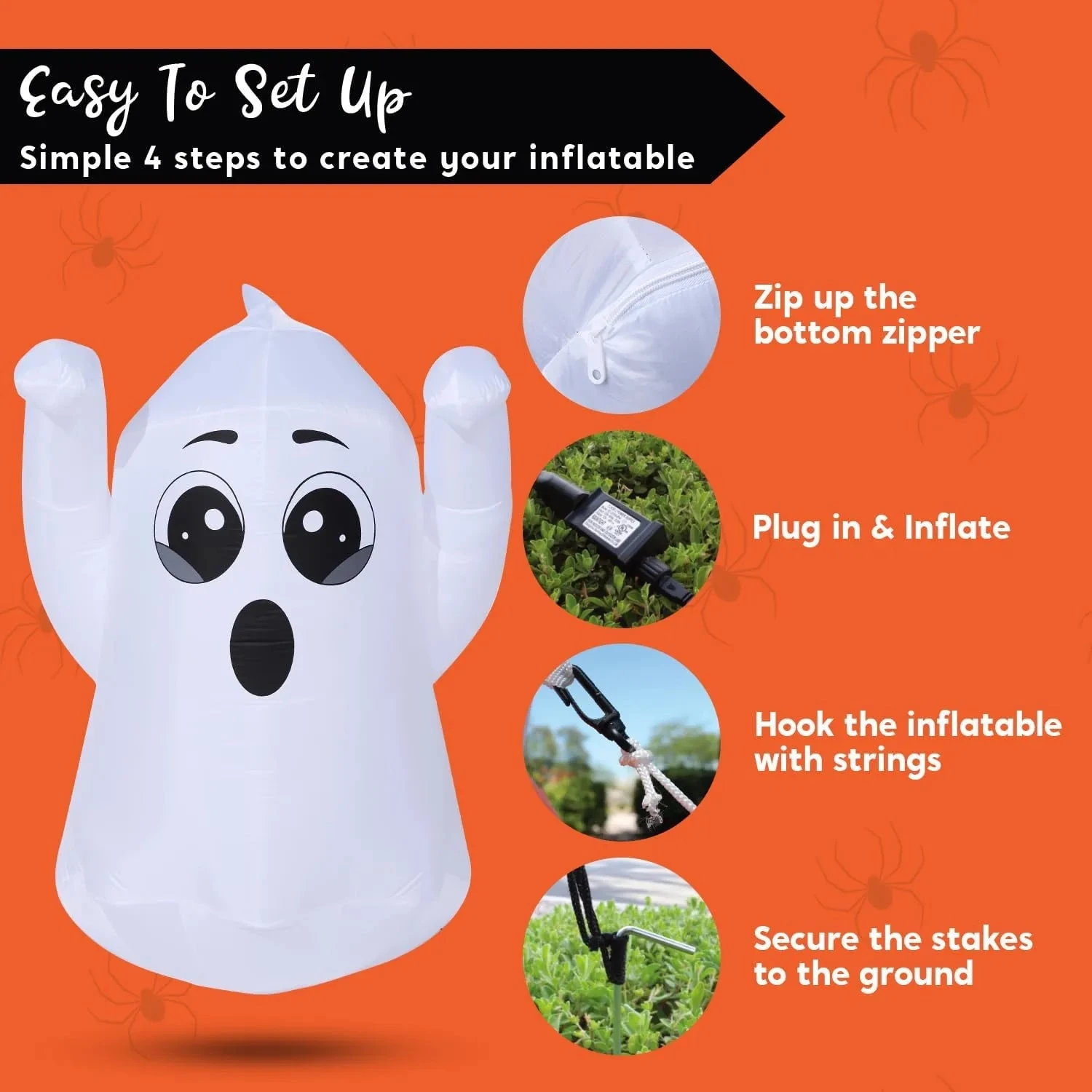 - Ease of Use. Setting up and operating this Halloween inflatable is a breeze. Simply plug it in, and watch as it quickly inflates, standing tall at 5 feet. The transparent PVC air bag at the bottom ensures stability, keeping the ghost securely in place during windy weather.
