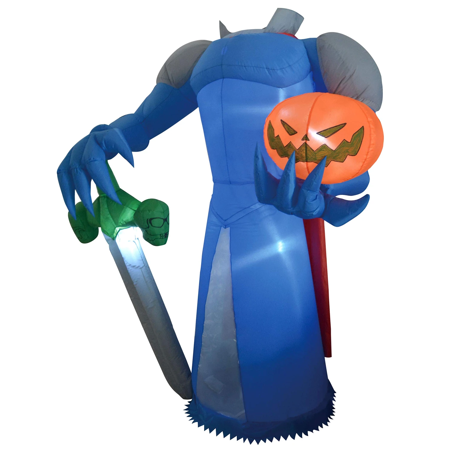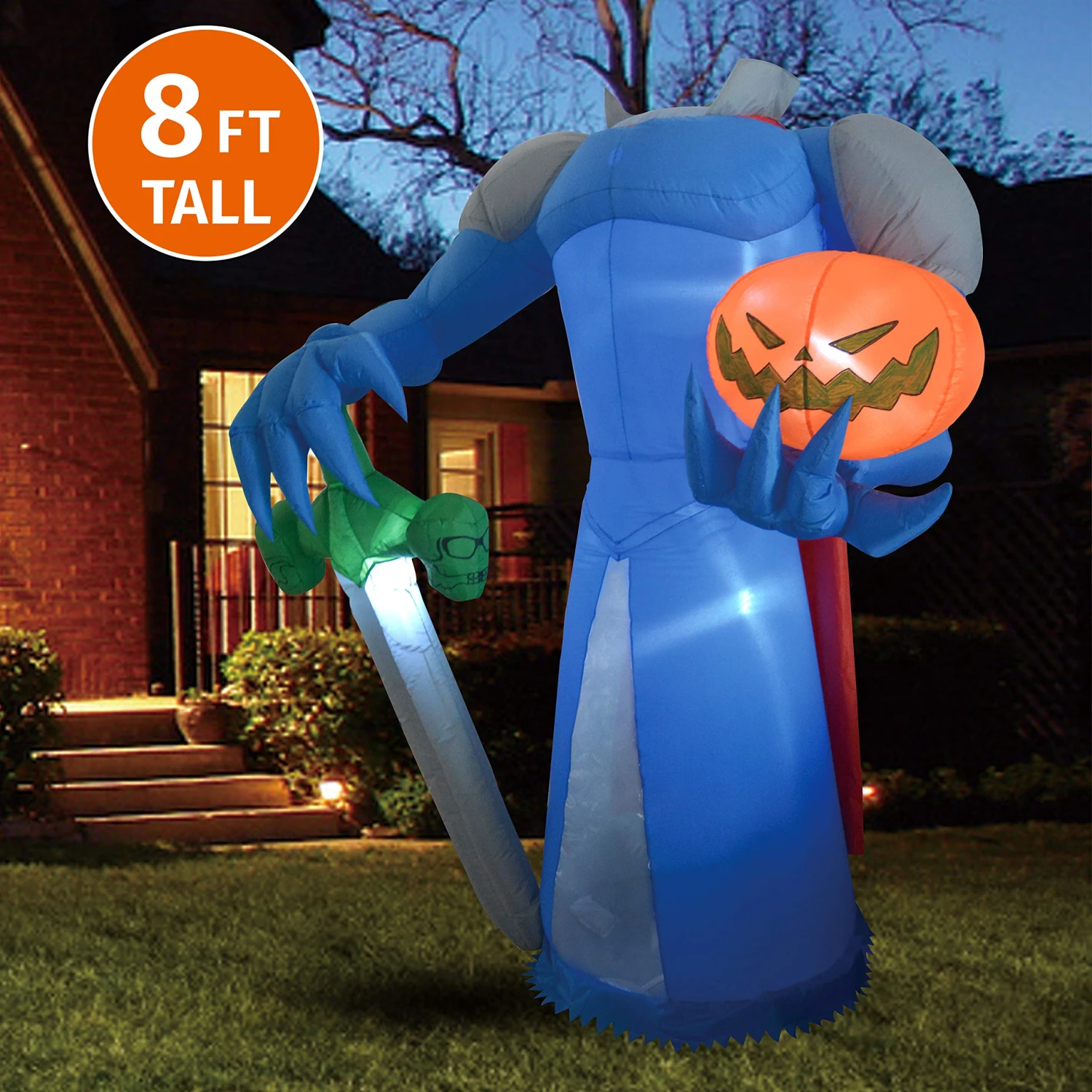 - Our 8 Ft Inflatable Pumpkin Knight. Goofy Spooky Convenient Halloween Holiday Yard Decoration Comes with 10ft extended cord, ground stakes, fastened ropes, and built in sandbags.