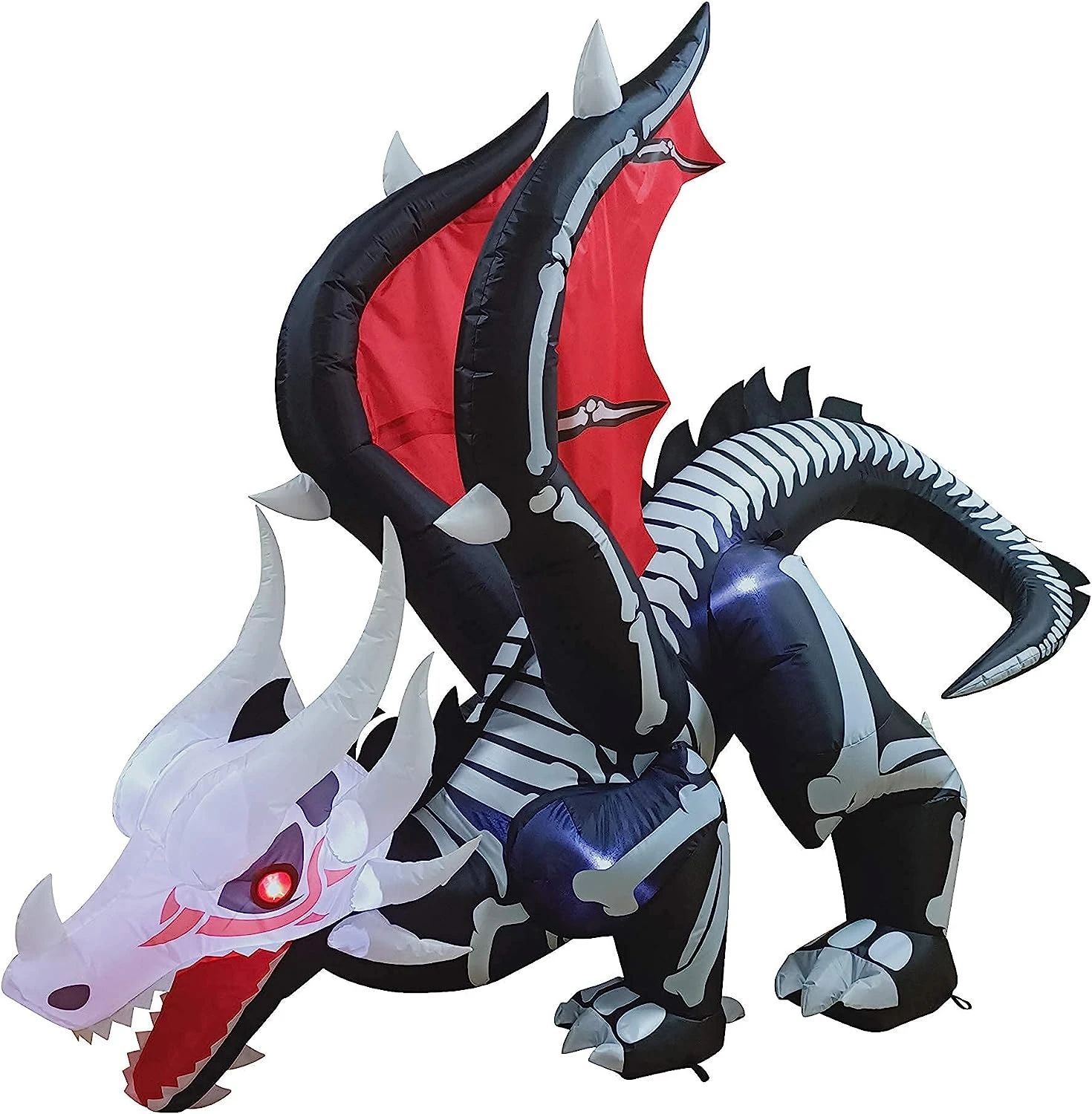 - Our 5.5 Feet Long Dragon Skeleton Inflatable comes with an extended cord, ground stakes, fastened ropes, built-in sandbags, and a plug with UL certification.