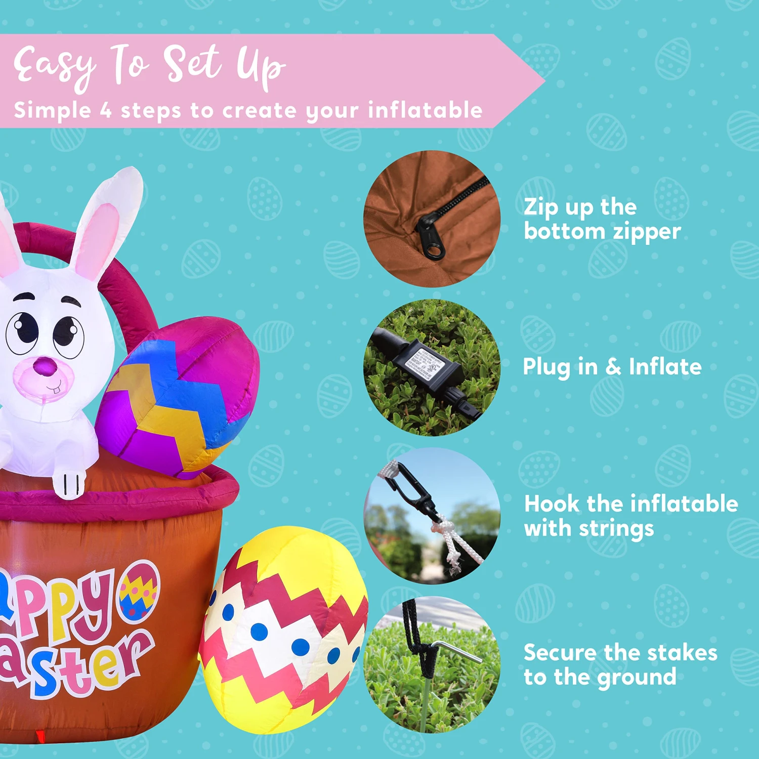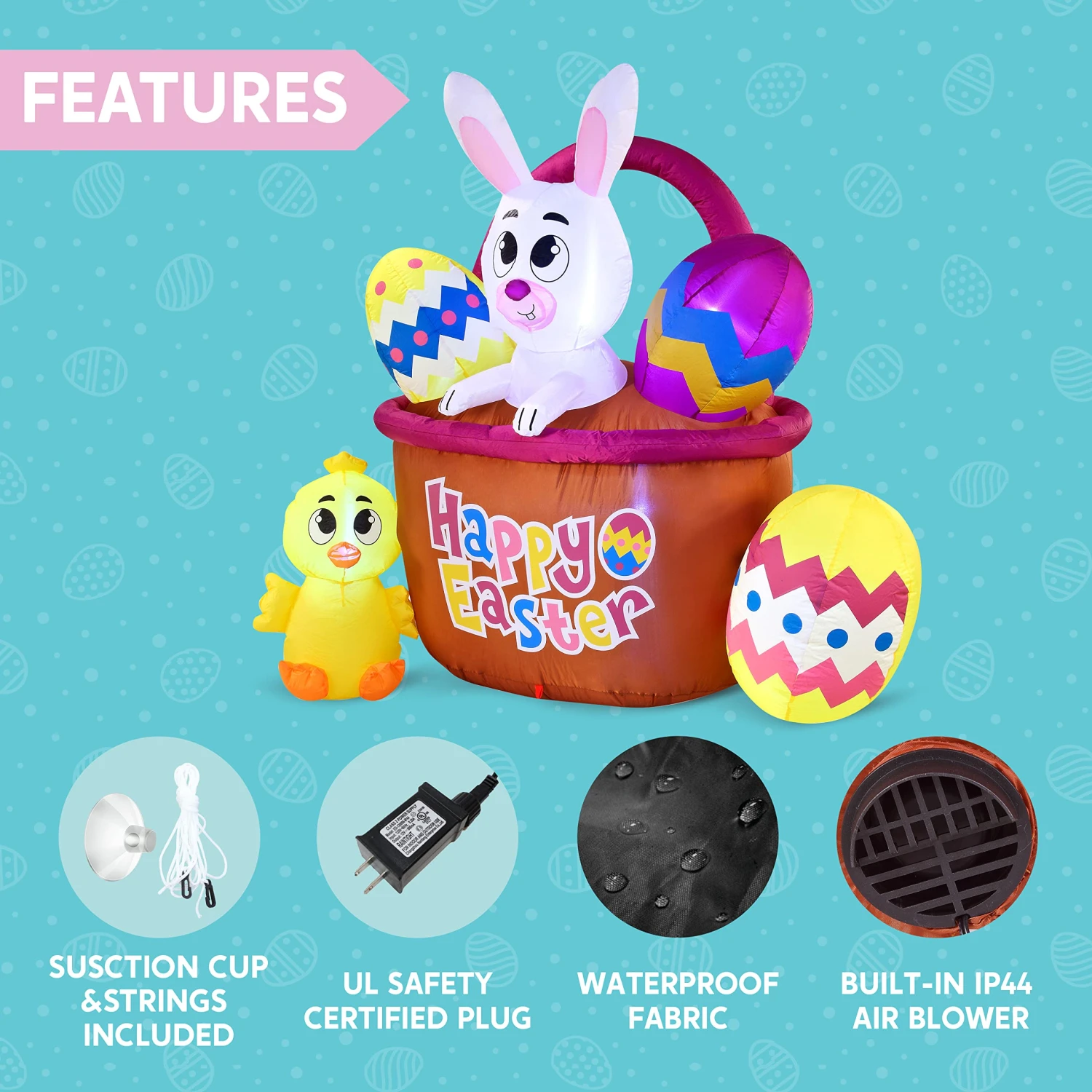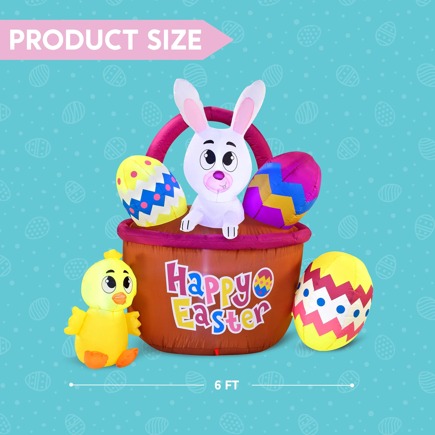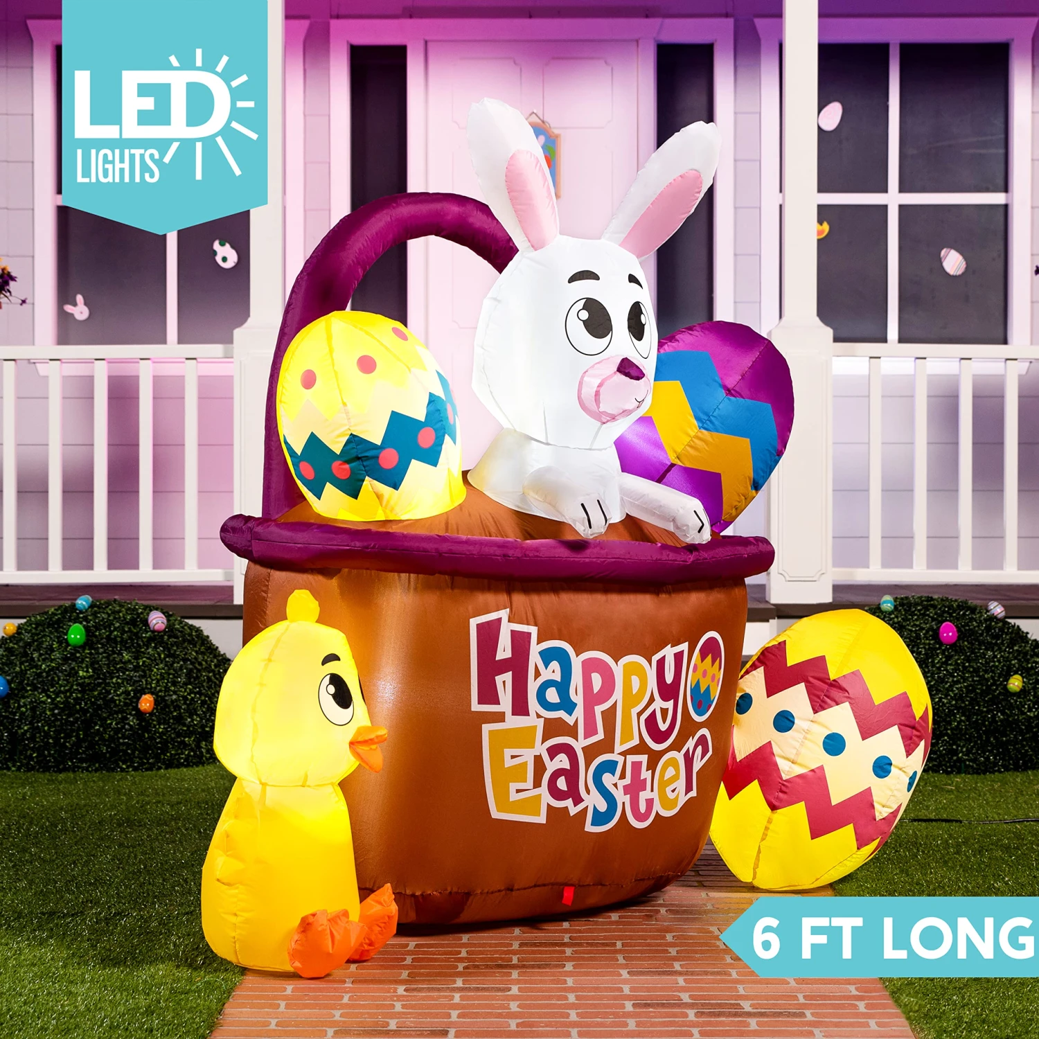 - 6 feet long Easter basket inflatable comes with an extended cord, ground stakes, fastened ropes, built-in sandbags, and a plug with UL certification.