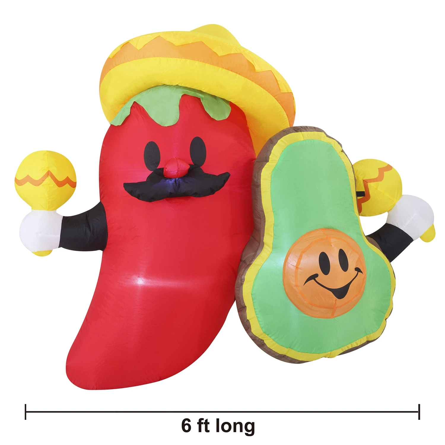 - Super value: 6 feet long colorful long avocado & chili inflatable comes with an extended cord, ground stakes, fastened ropes, built-in sandbags, and a plug with UL certification.