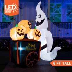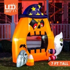Halloween Tall Three Characters On Pumpkin Inflatable (5 Ft)